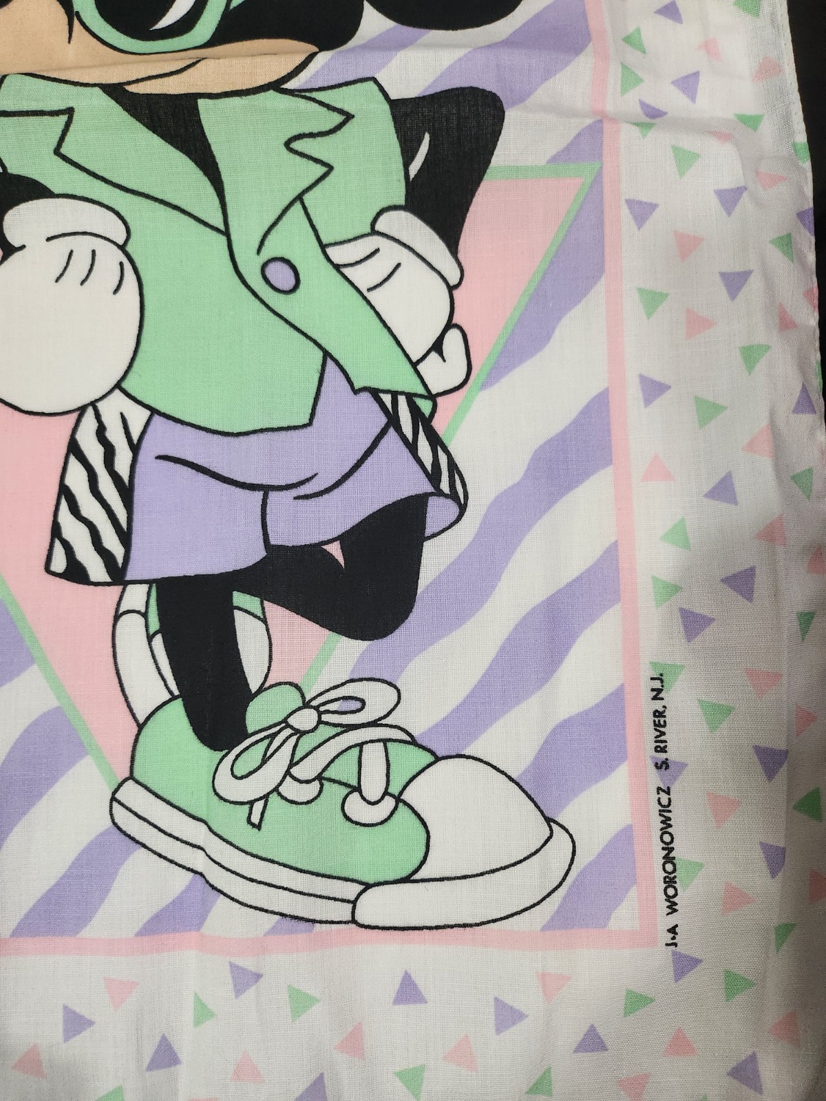 Vintage Mickey Minnie Mouse Disney Scarf 1989 Pastel 80s Bandana Handkerchief