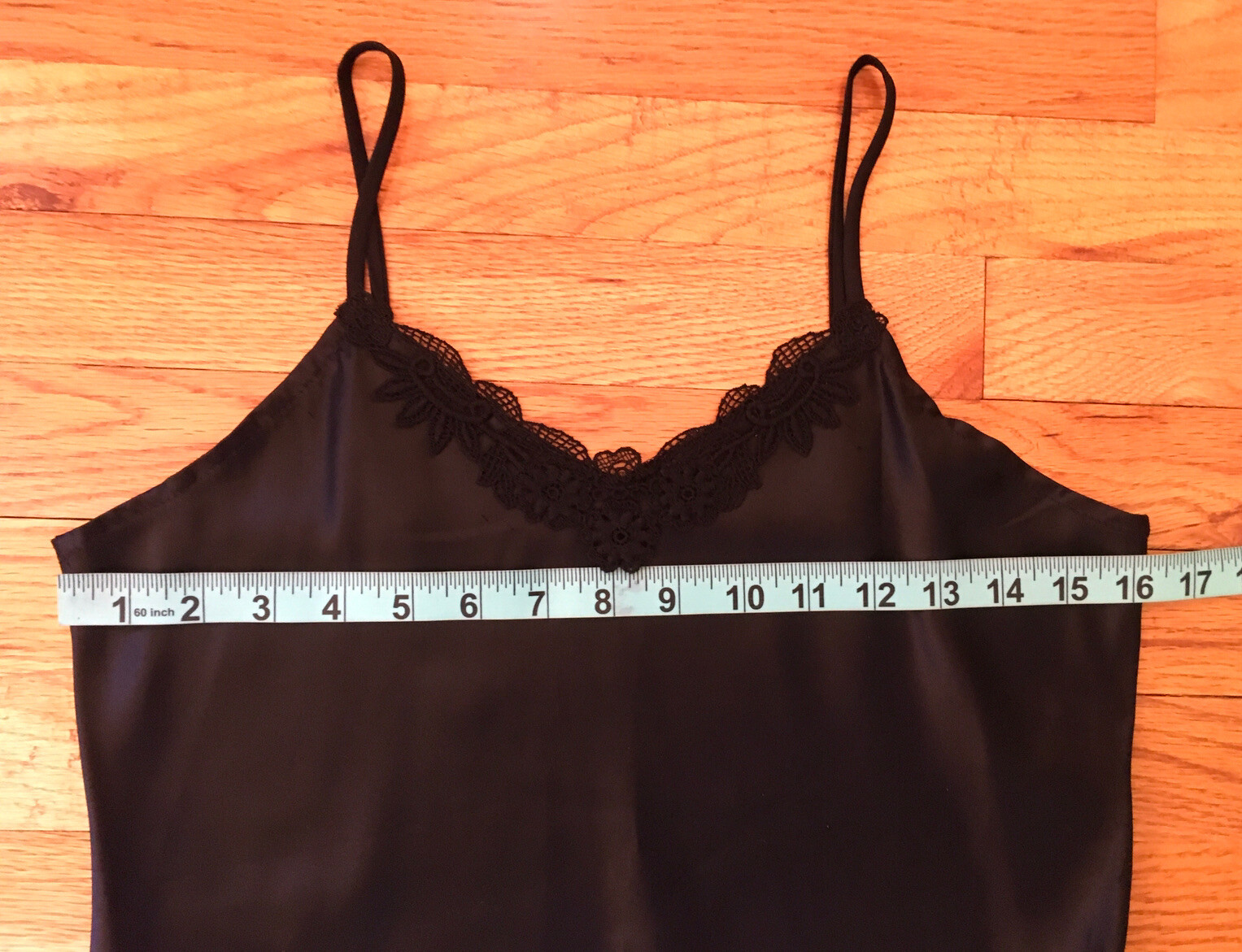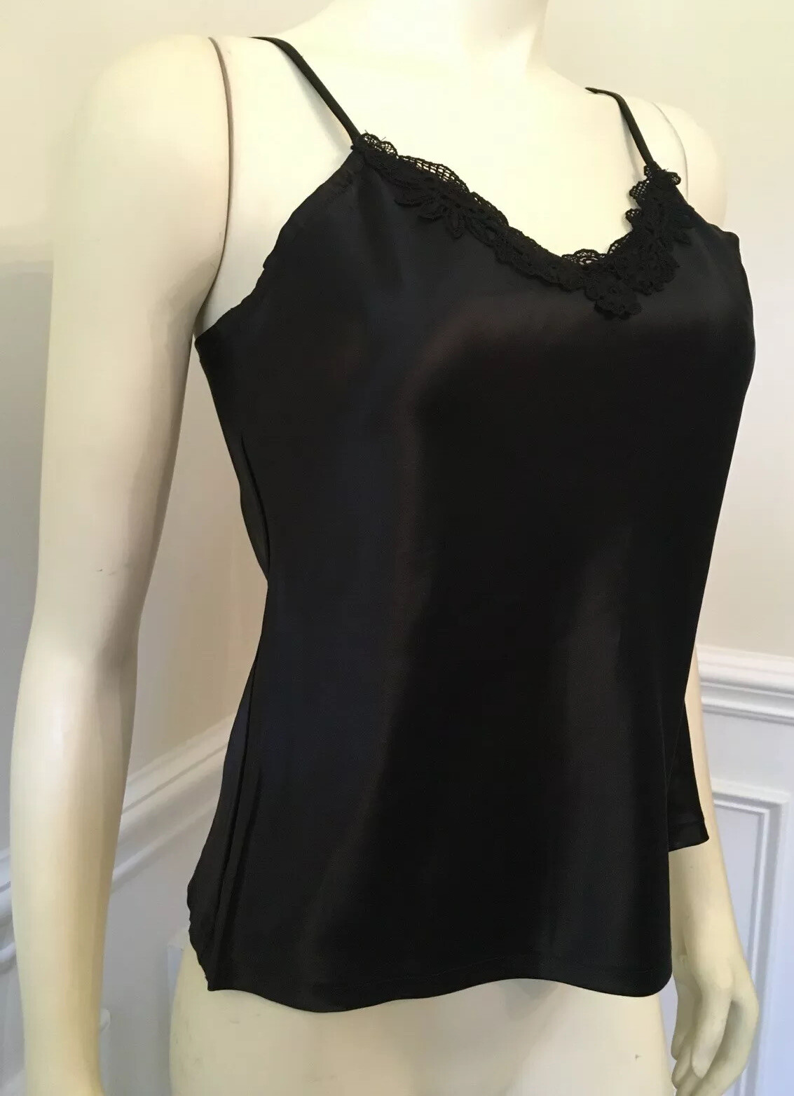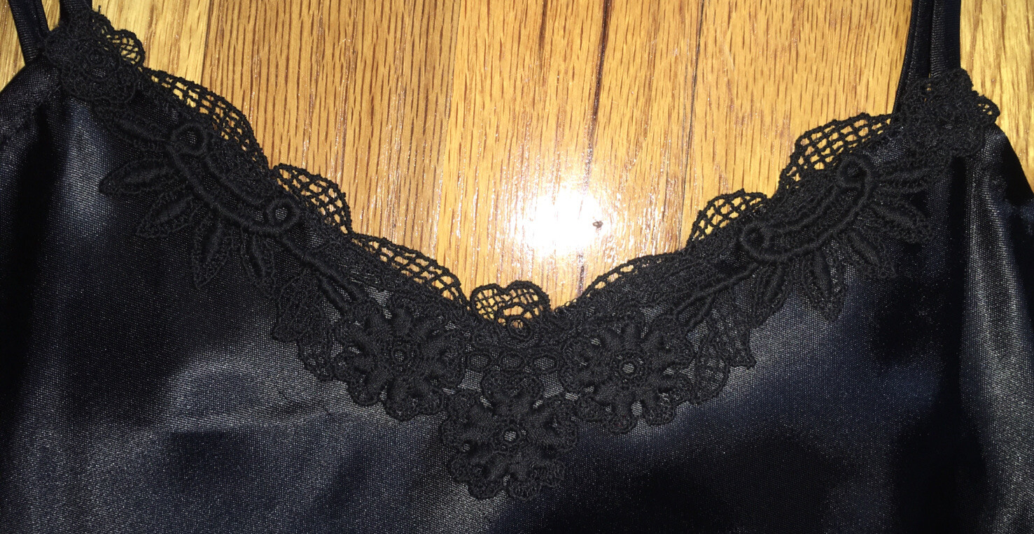 Morning Glory WN SZ 7-8 BLACK CAMISOLE 100 ACETATE W/Lace Trim