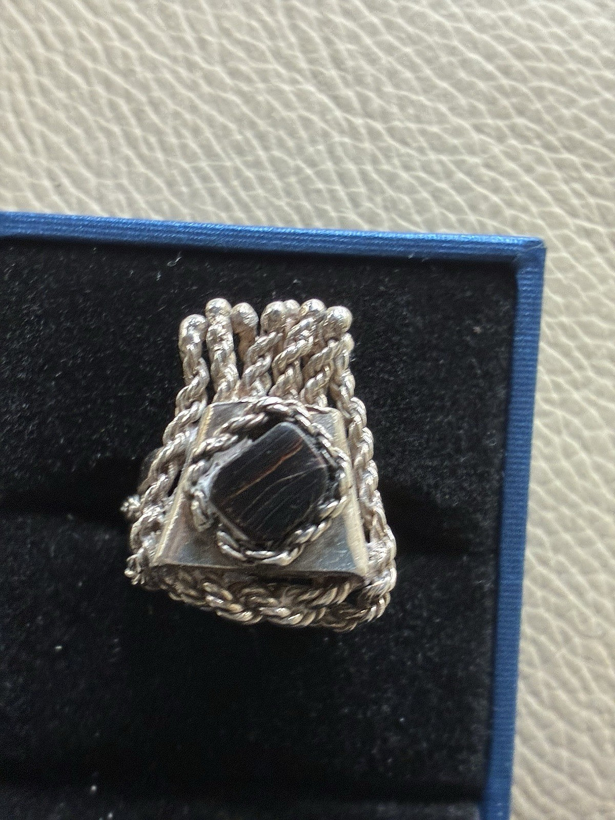 как выглядит Sterling silver ring with black onyx, Size 7, signed by artist, 925 solid. фото