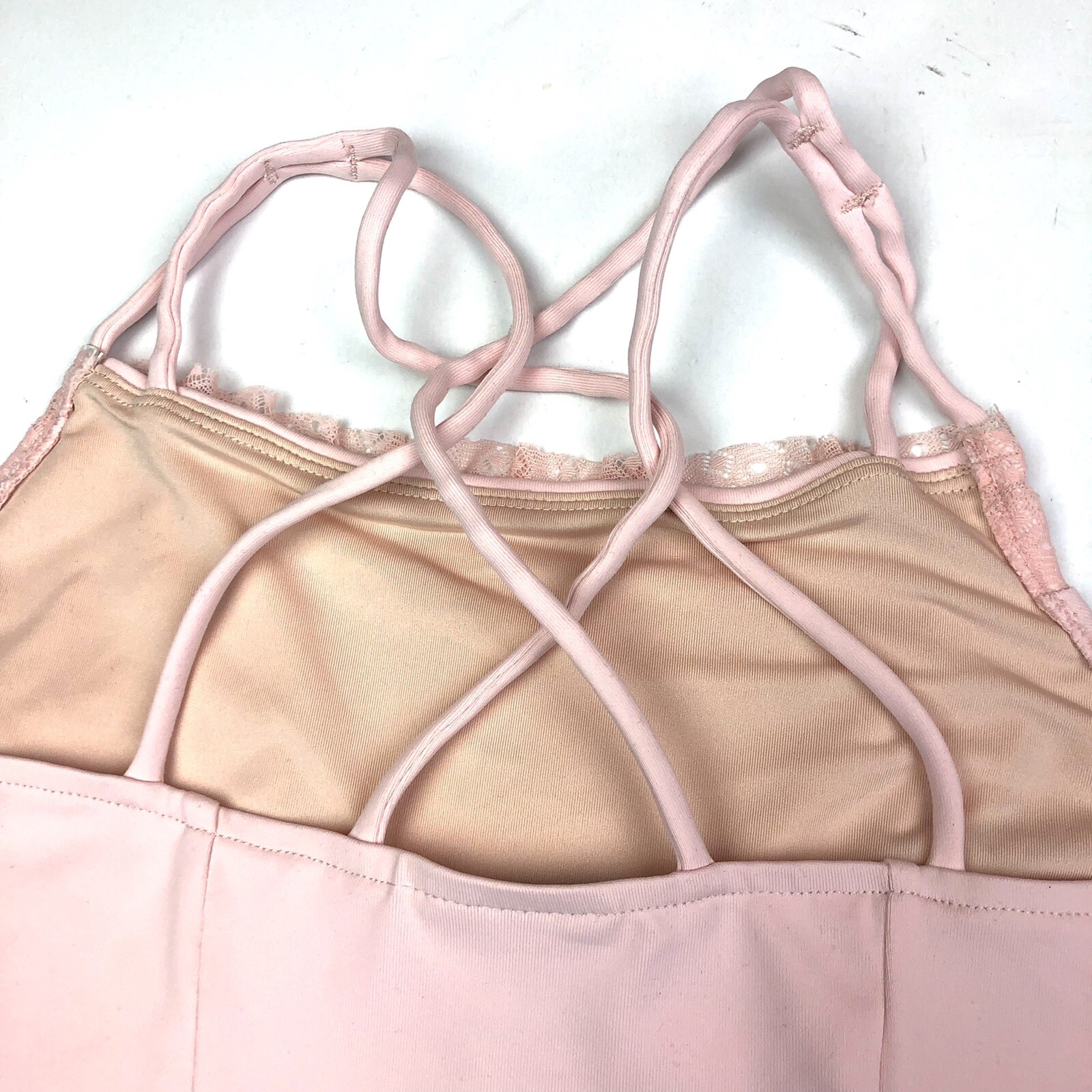 Danskin Girls Youth Medium 8-10 Leotard 2 pc Cami Petal Pink Lace Criss Cross