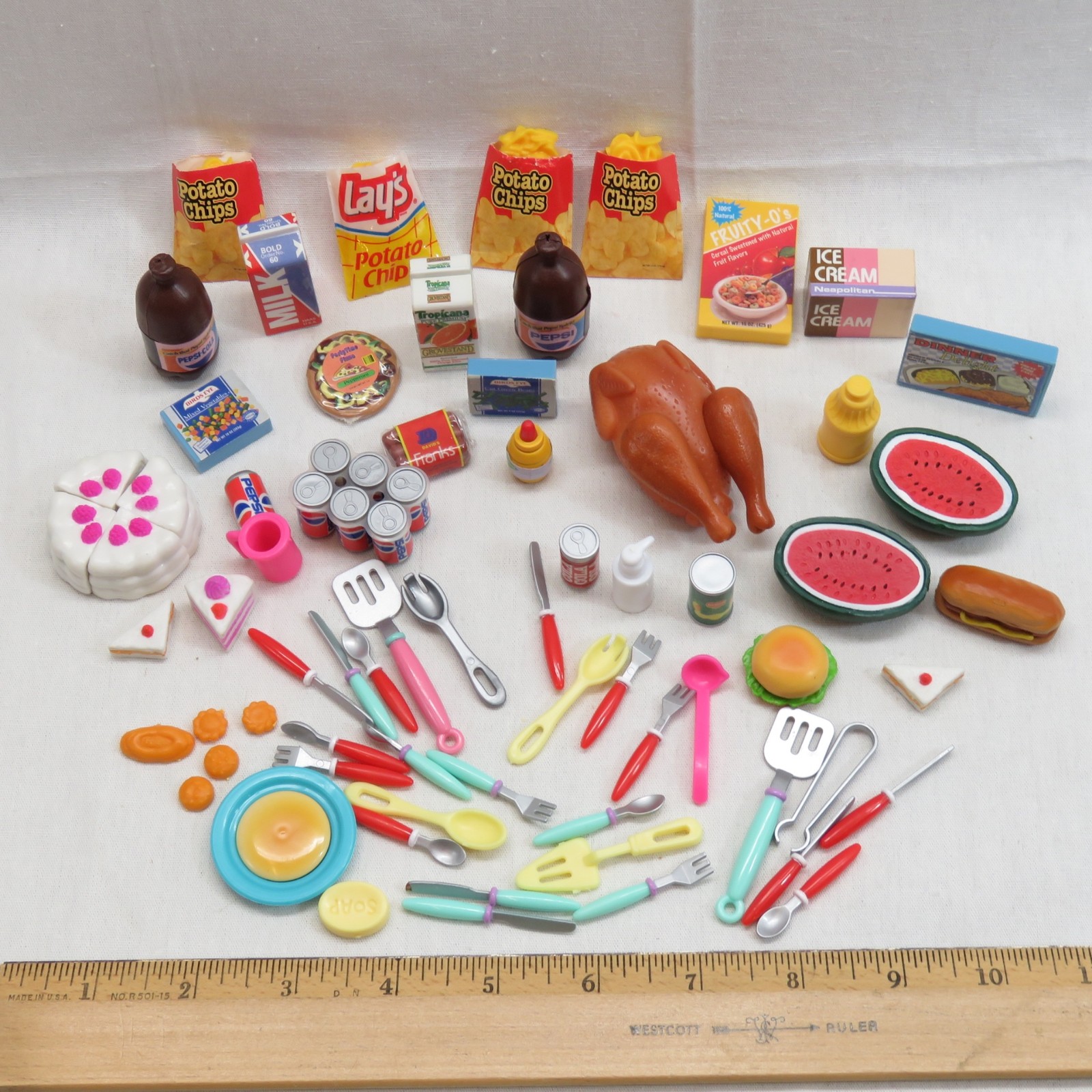 Large Lot of Pretend Play Miniature Food and Kitchen Utensils/Flatware