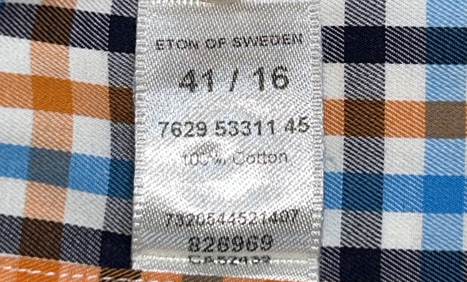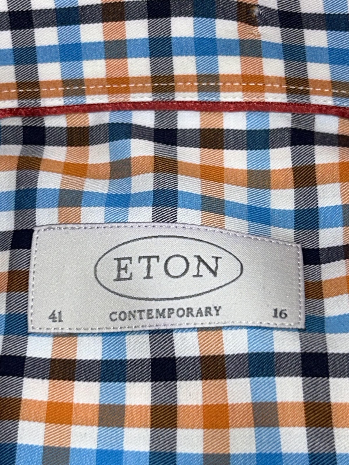 Eton Dress Shirt Mens 41 16 Blue Orange Check Contemporary Cotton Long Sleeve
