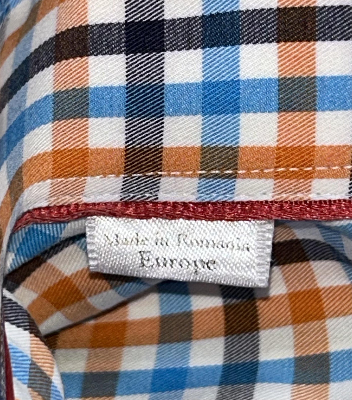 как выглядит Eton Dress Shirt Mens 41 16 Blue Orange Check Contemporary Cotton Long Sleeve фото