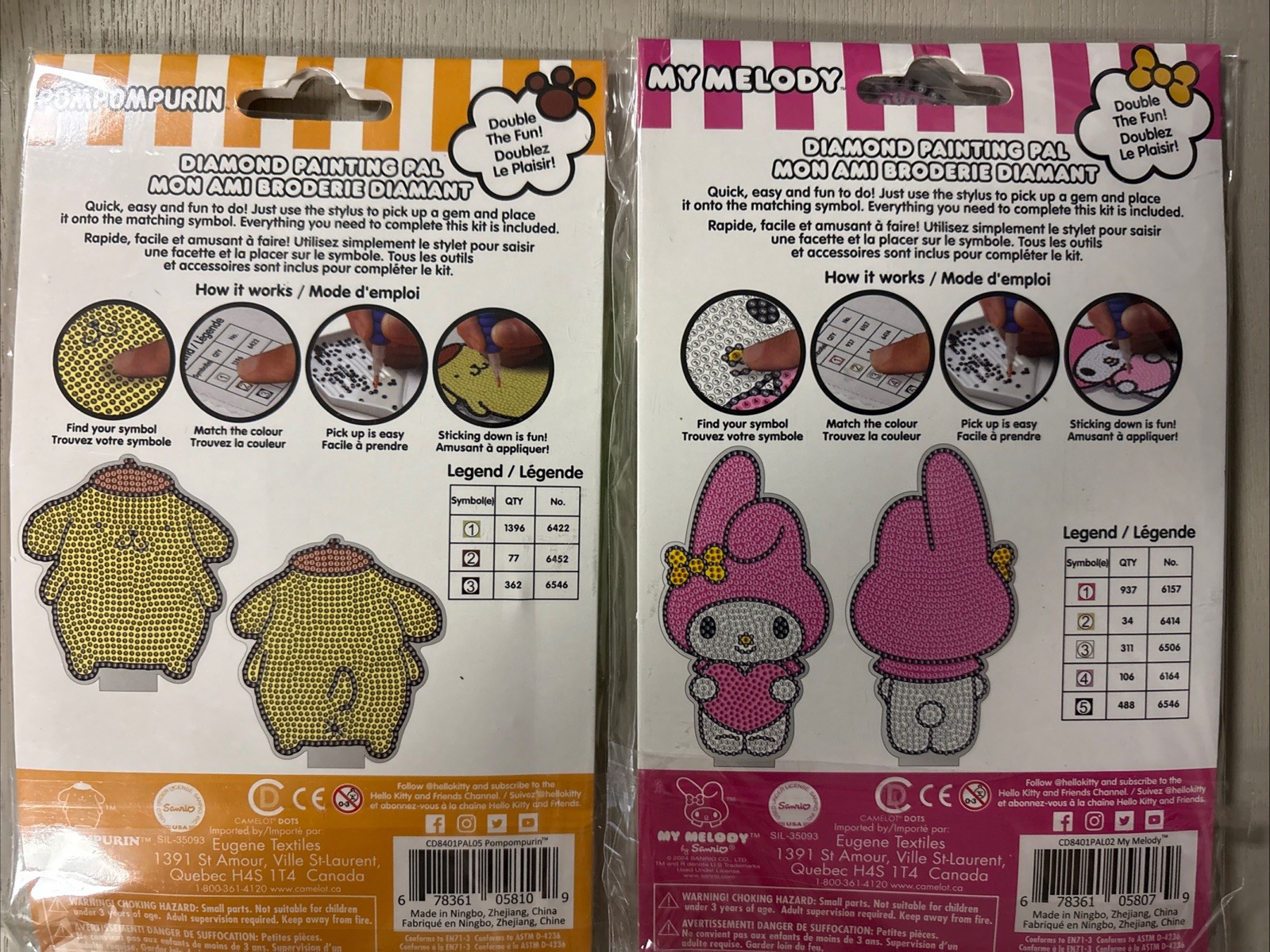 2 Diamond Painting Pal Pompompurin 4.53 x 4.92 and My Melody 3.3 x 6.2
