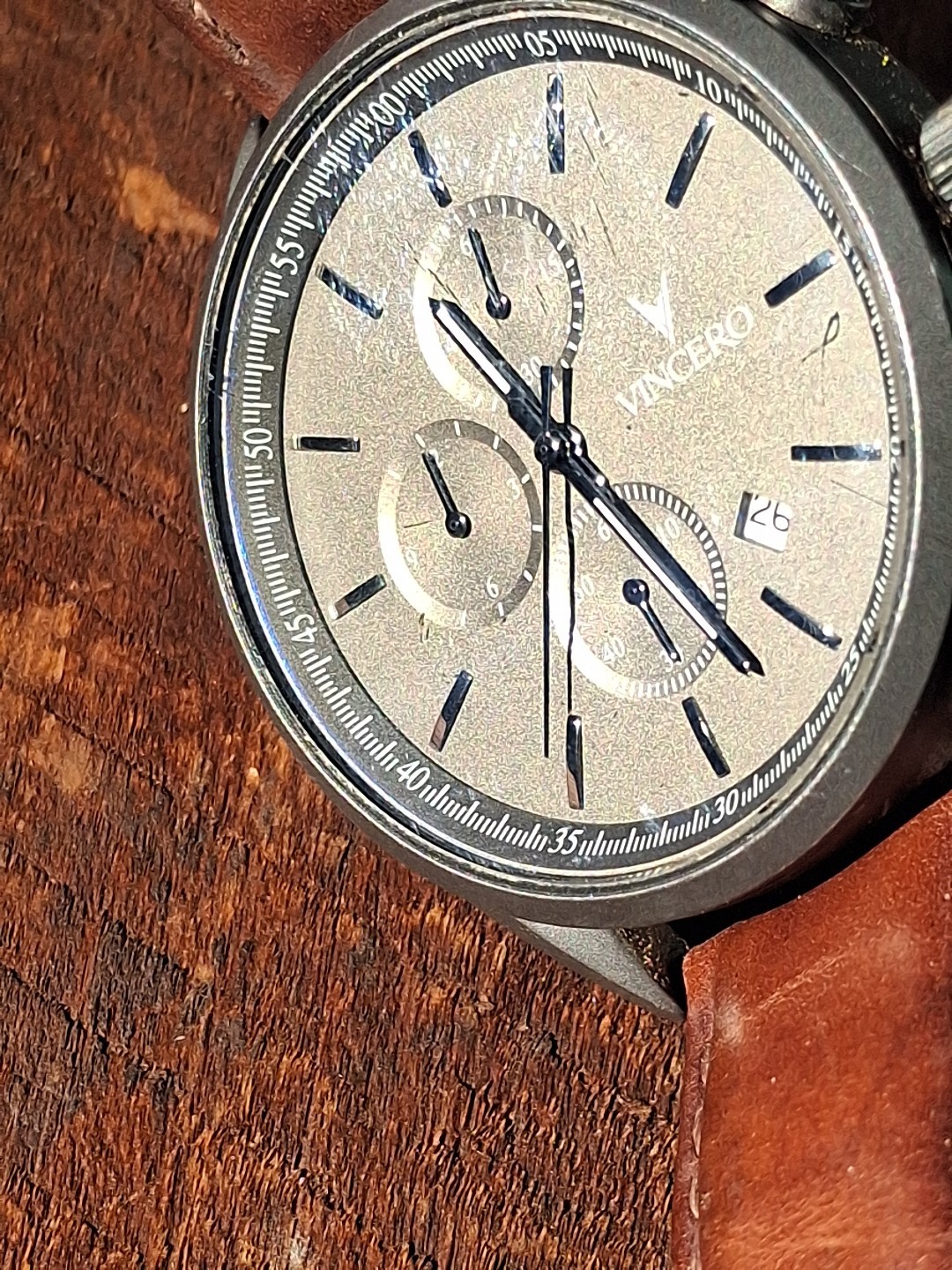 как выглядит Vincero Chrono S 41mm Mens Gun Metal Watch with Genuine Italian Leather Band. фото