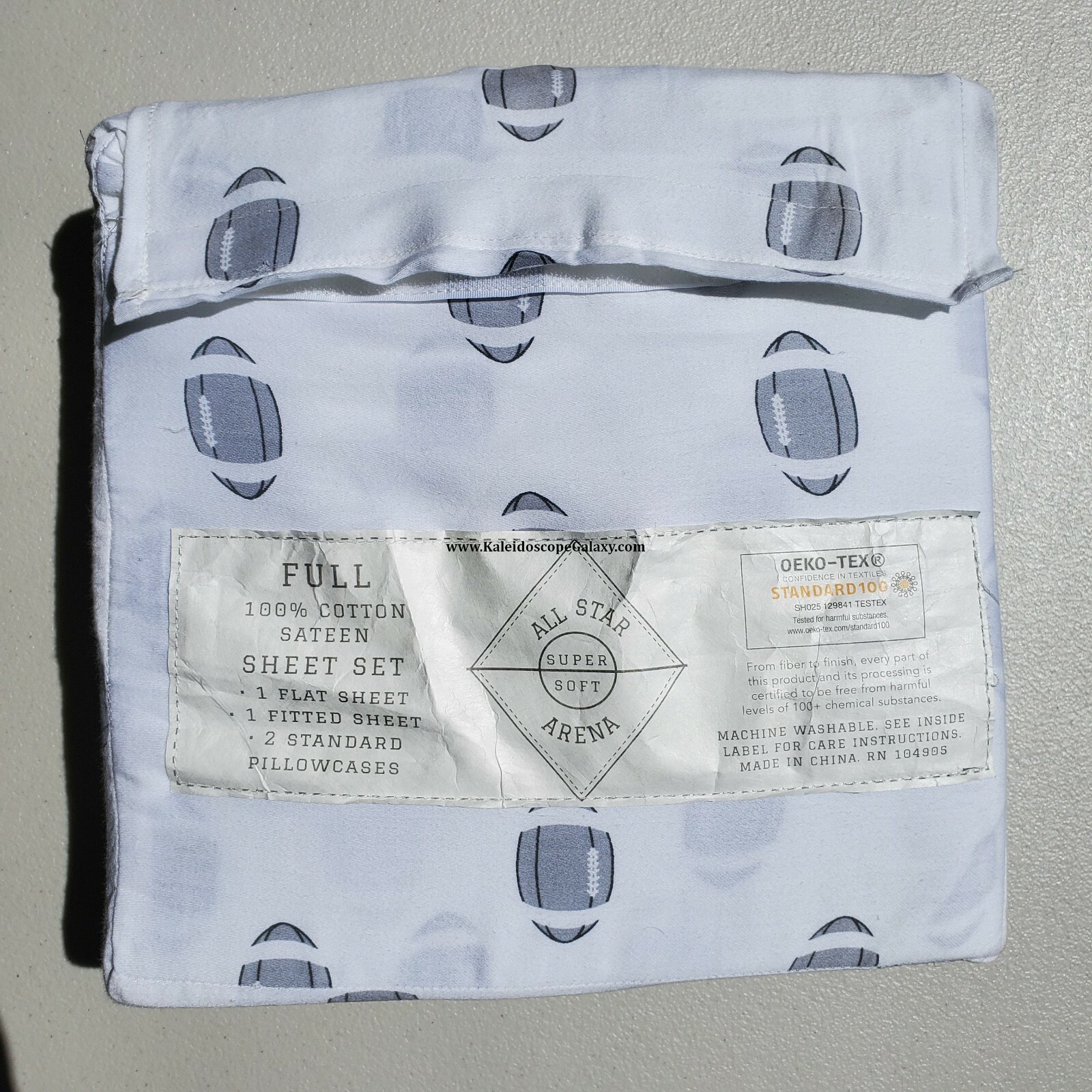FOOTBALL Sheets 4 PIECE FULL SIZED BED SHEET SET 100 COTTON SATEEN GRAY Sports