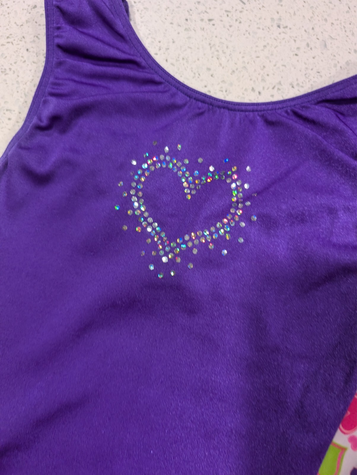 как выглядит SUPER CUTE GK ELITE Stars Gymnastics Dance Leotard Extra Small PURPLE Hearts фото