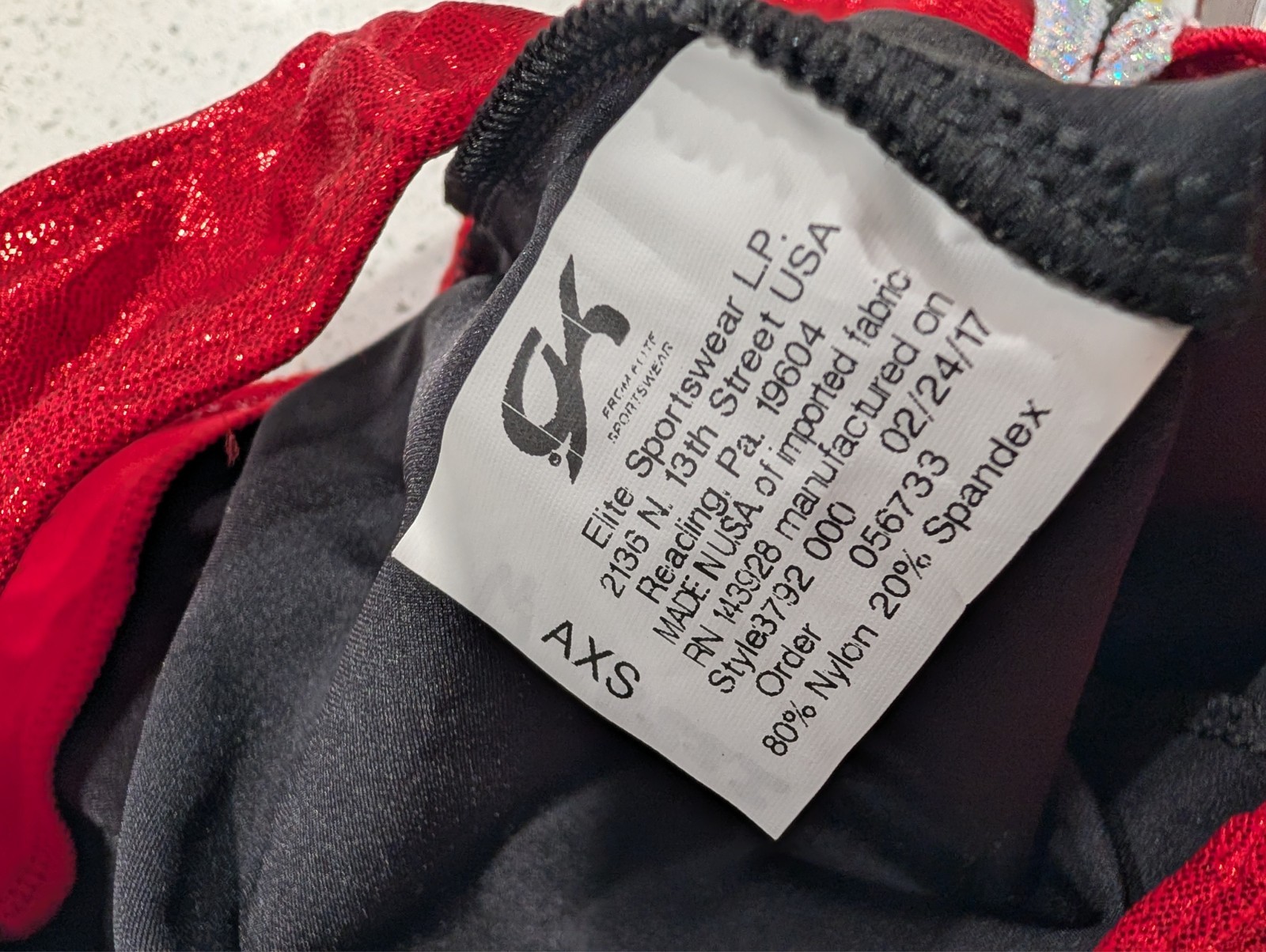 CHRISTMAS RED SILVER GK Elite Gymnastics Leotard AXS Extra Small Mystique Xmas