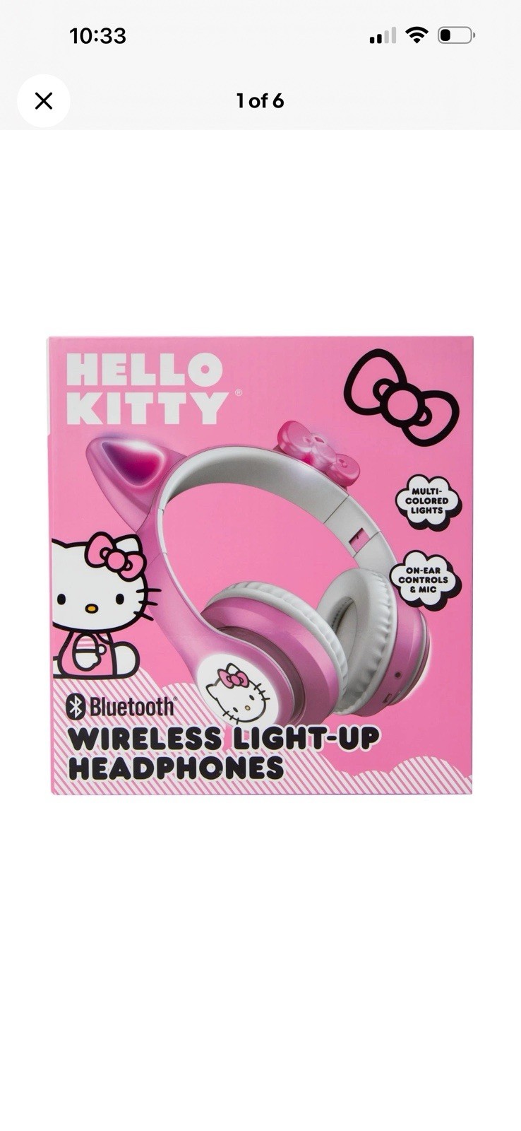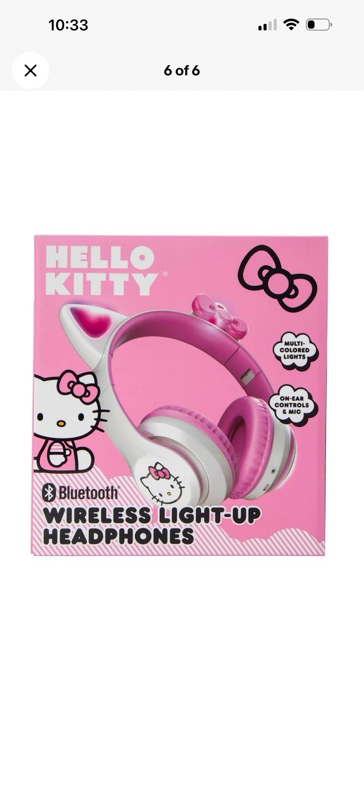 как выглядит Hello Kitty Wireless Light Up Headphones Bluetooth Pink White by Sanrio NEW фото