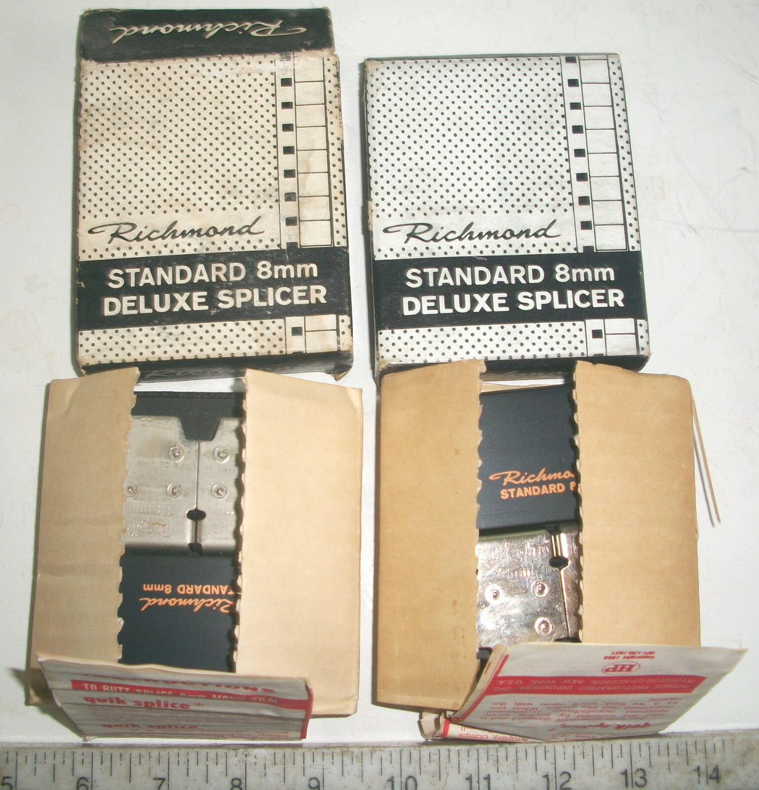 2 Vintage Metal Richardson Standard 8mm Film Splicer w/ Instructions, Unused NOS