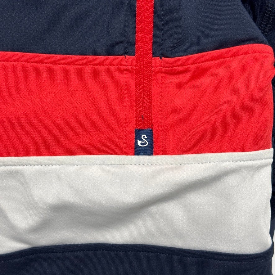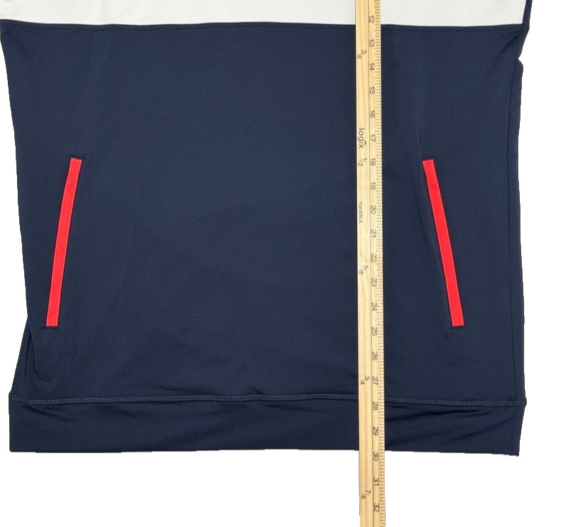 как выглядит Swannies Quarter Zip Hoodie Mens L Navy Red White Colorblock Ski Print Hood фото