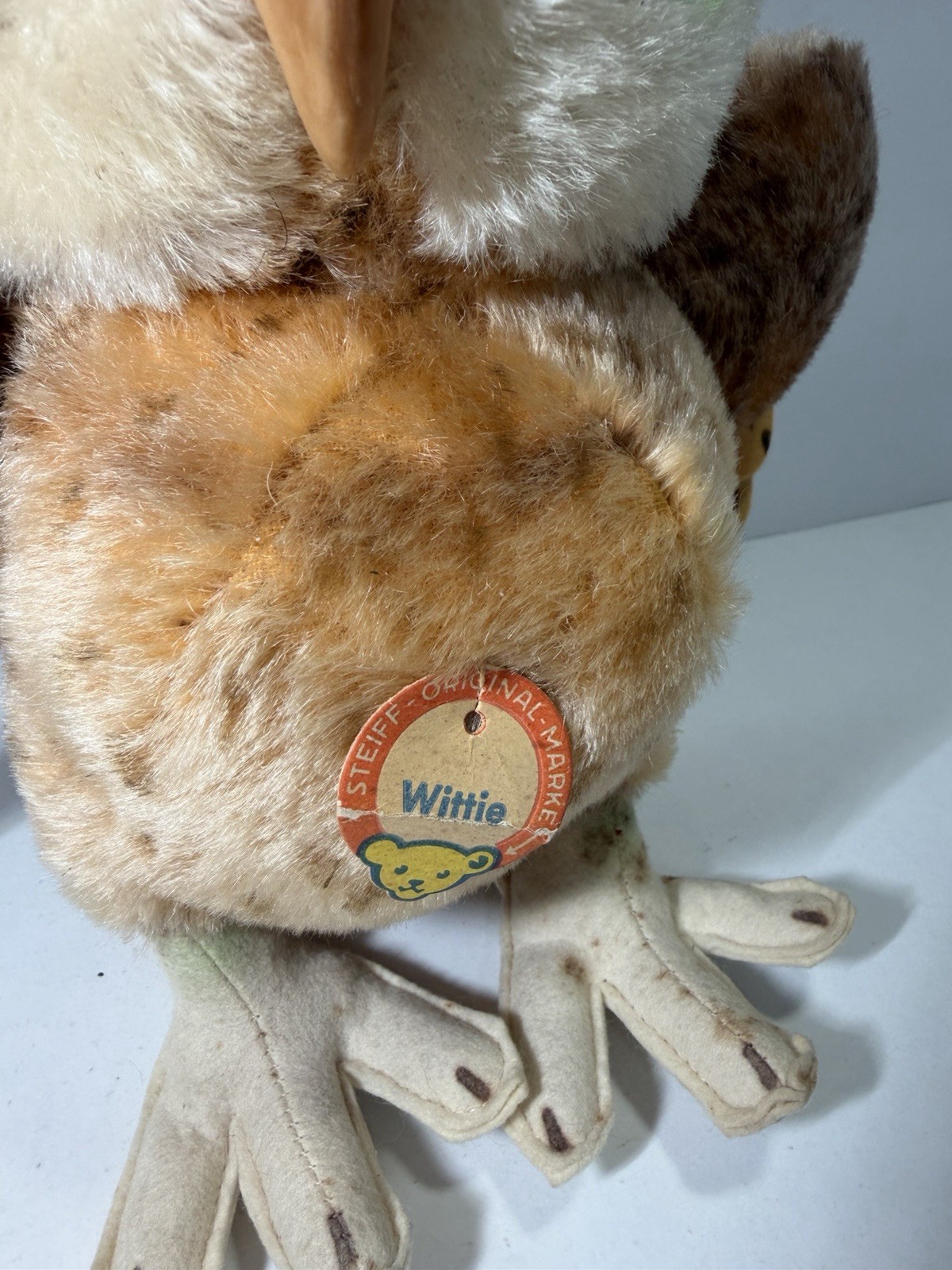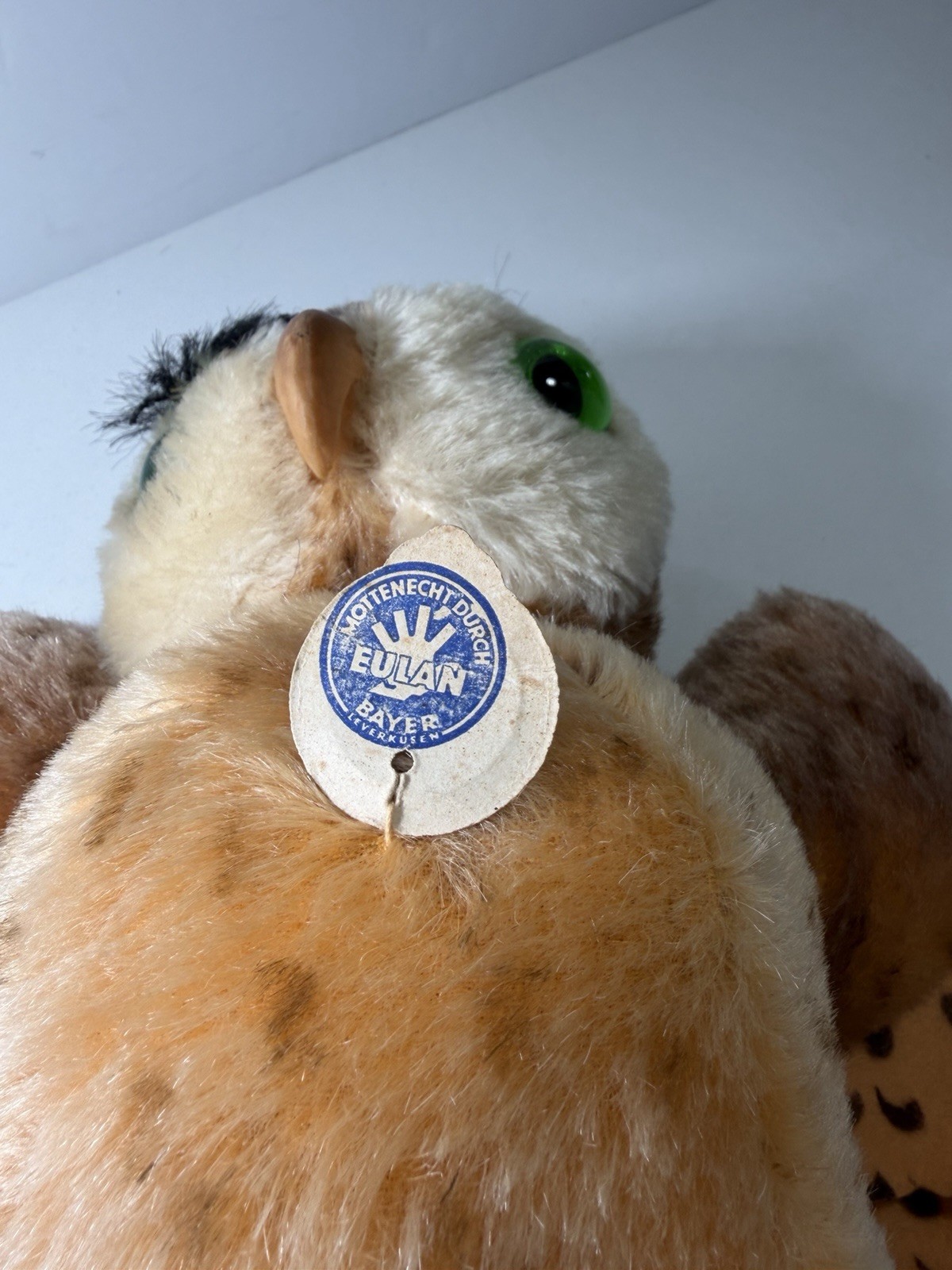 как выглядит Steiff Wittie Owl Mohair Plush 22cm 9in Green Eyes Great Condition With Tag фото