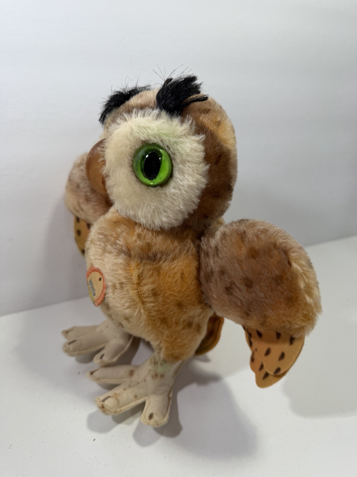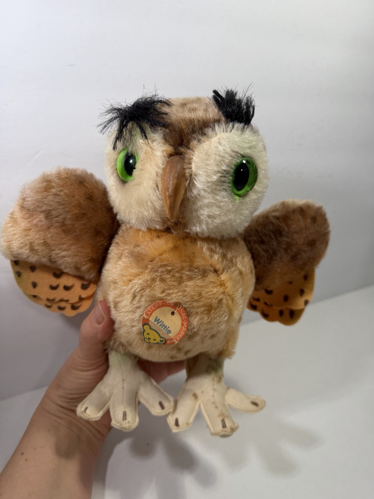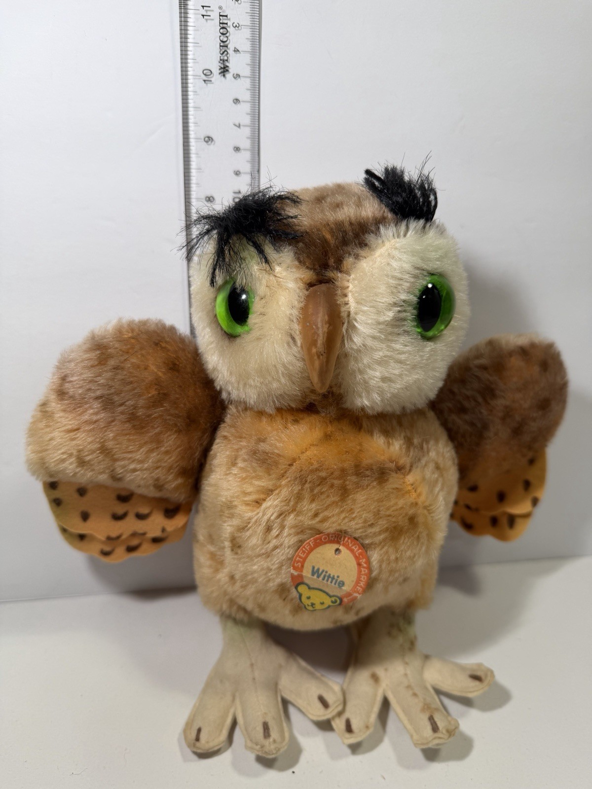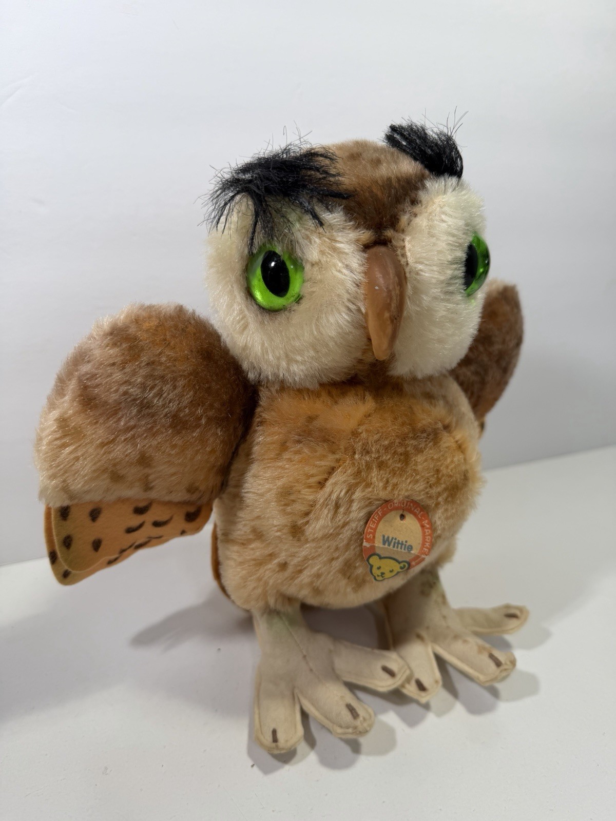 Steiff Wittie Owl Mohair Plush 22cm 9in Green Eyes Great Condition With Tag