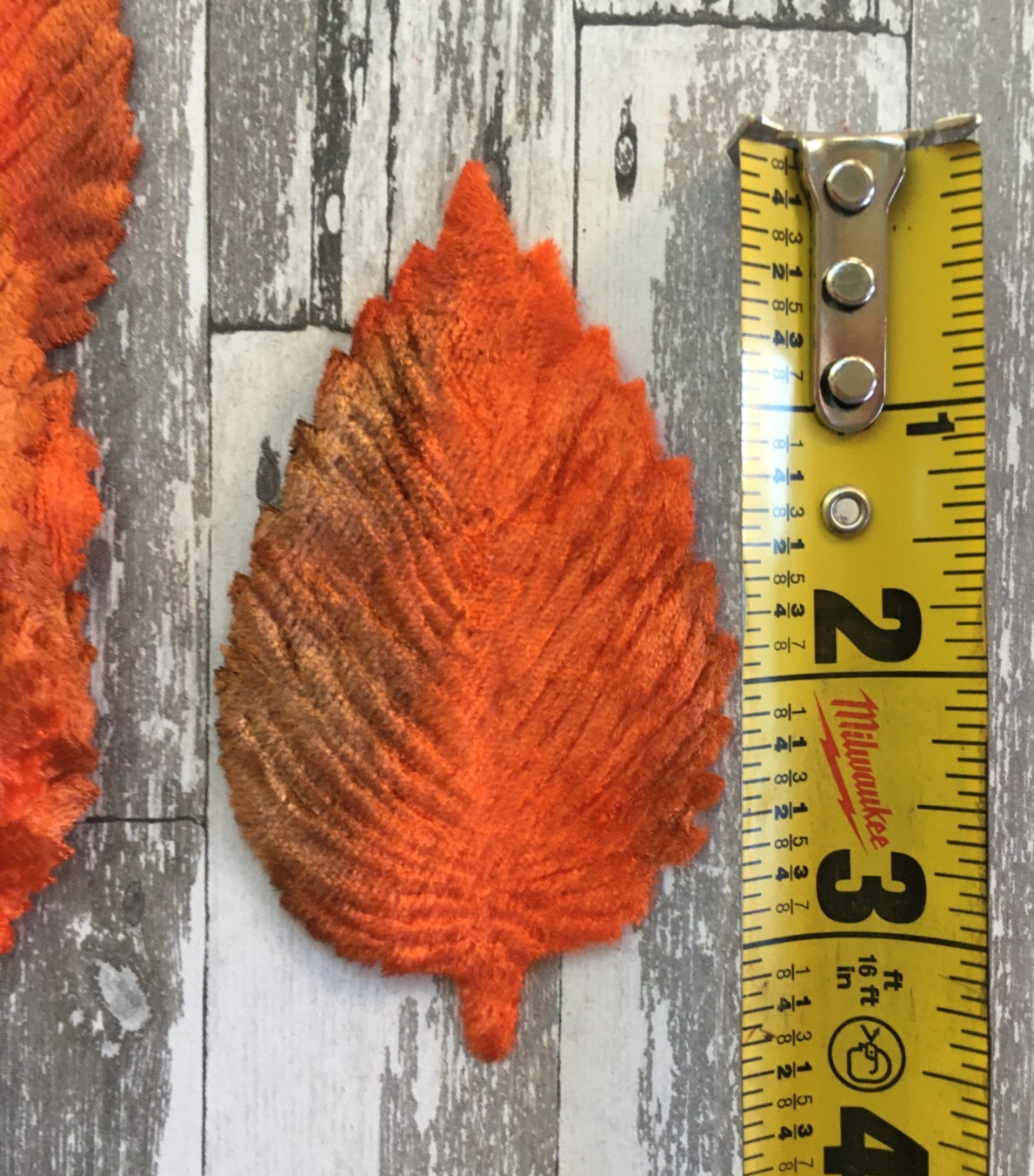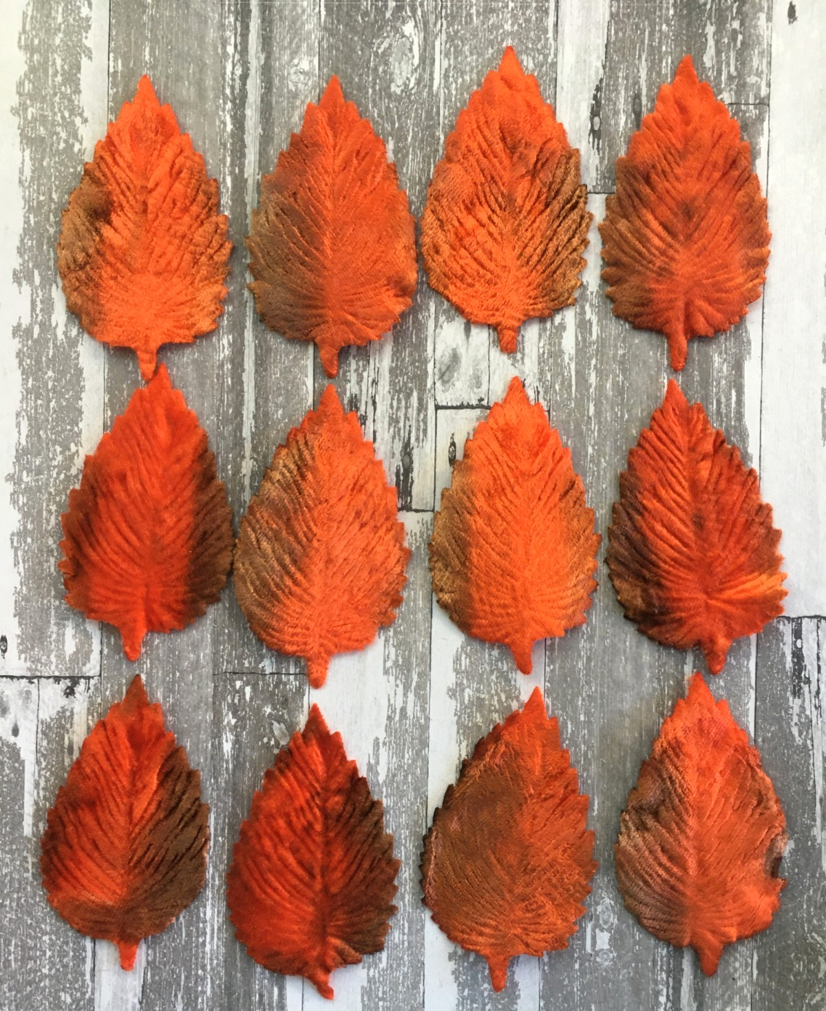 как выглядит Antique Vintage Millinery Velveteen Leaves Textured Orange Brown - Set of 12 фото