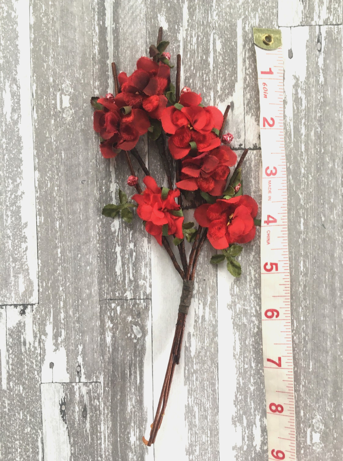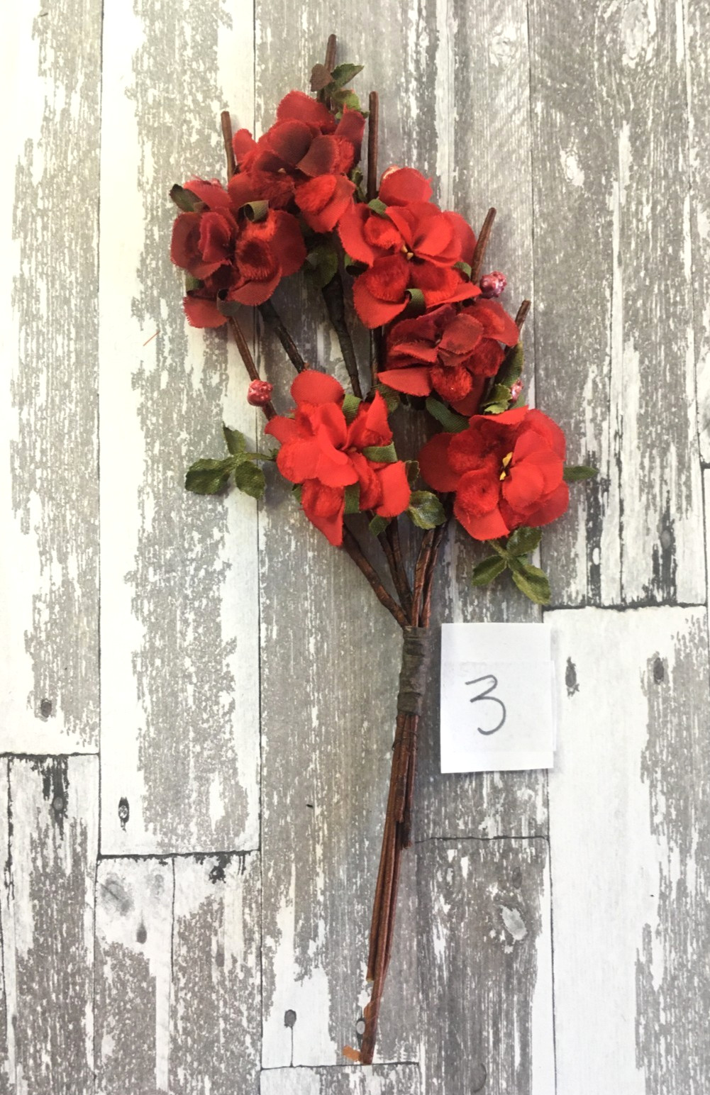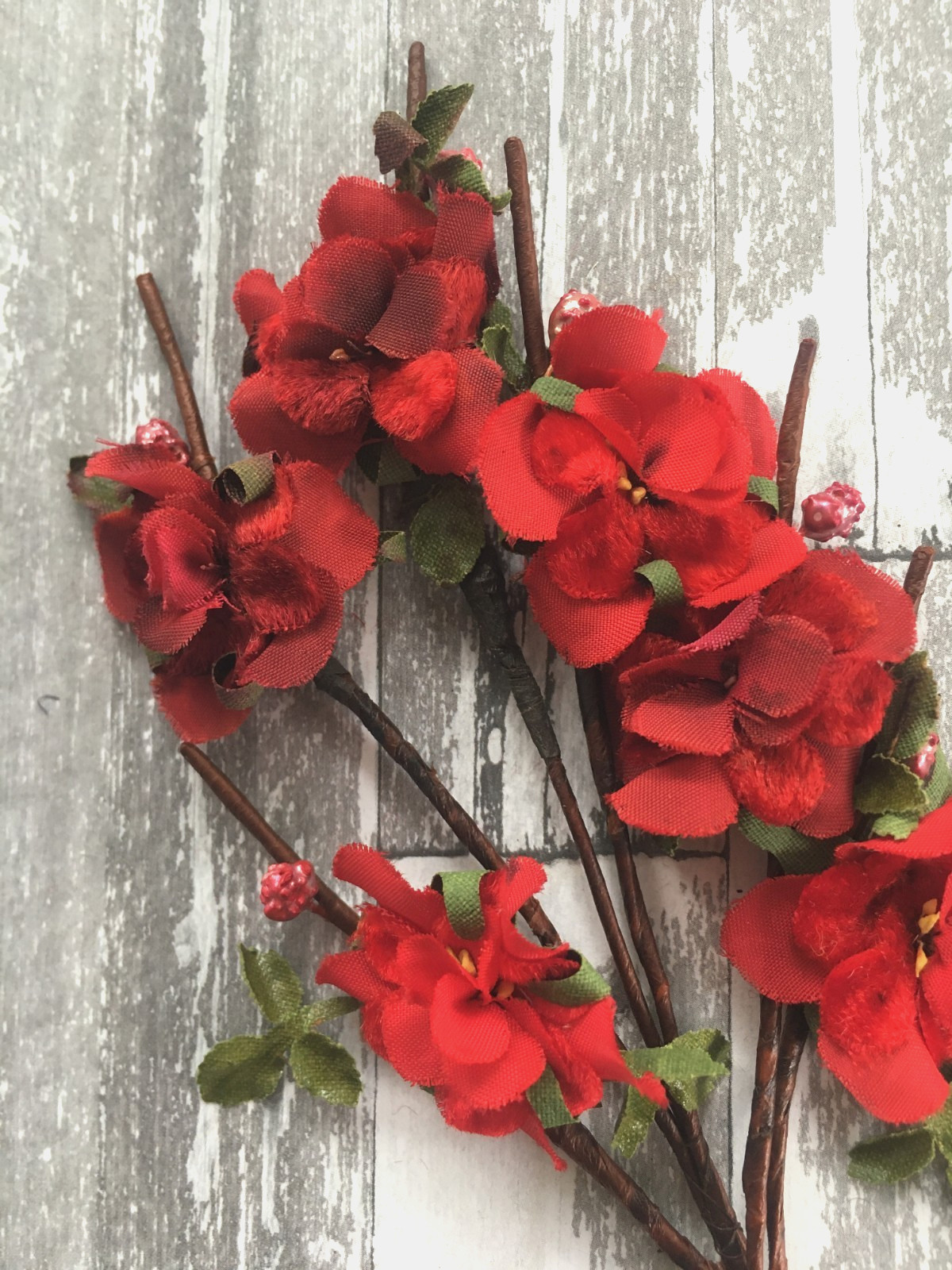 Antique Vintage Millinery Velvet Spray of Flowers Red with Pearlized Berries