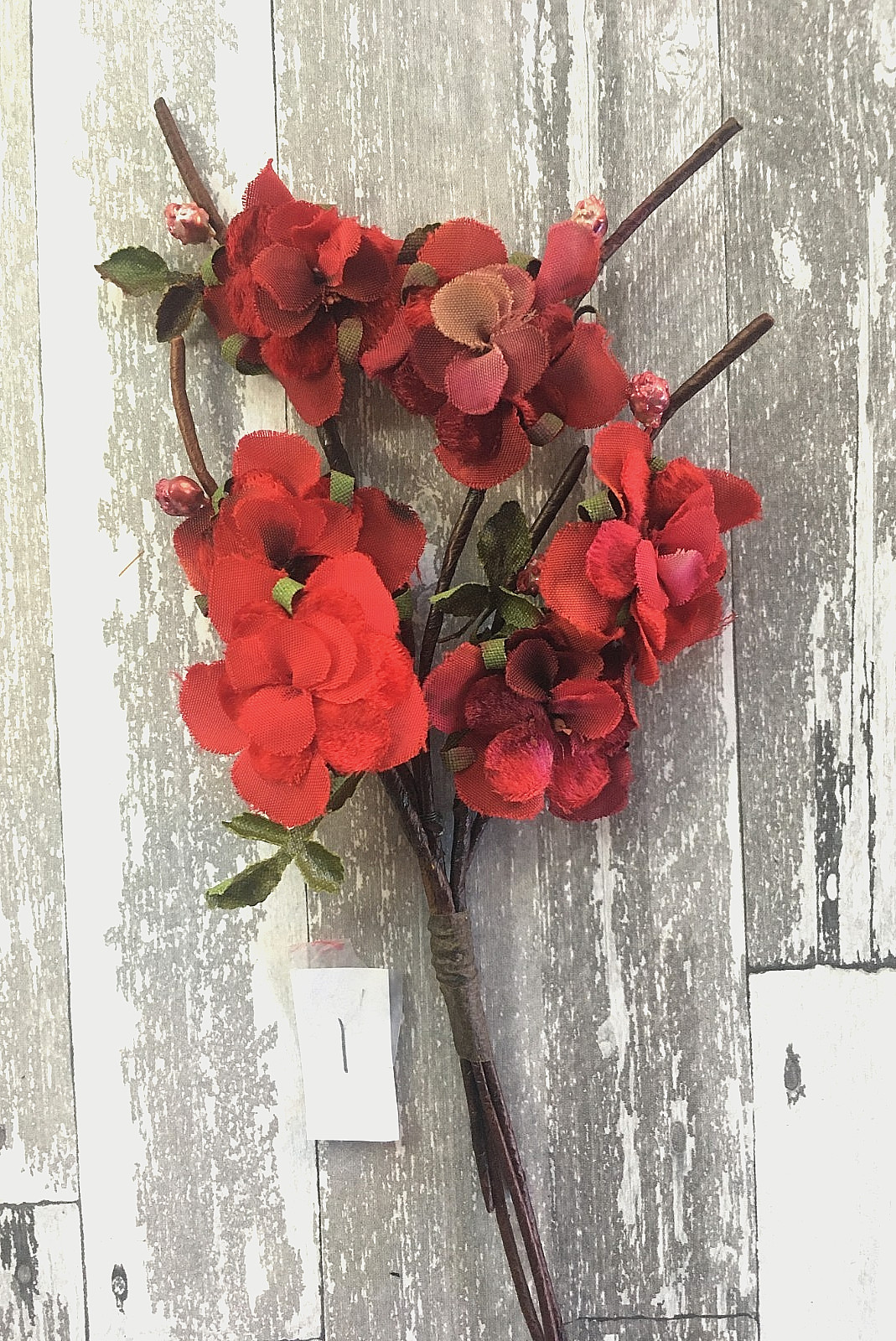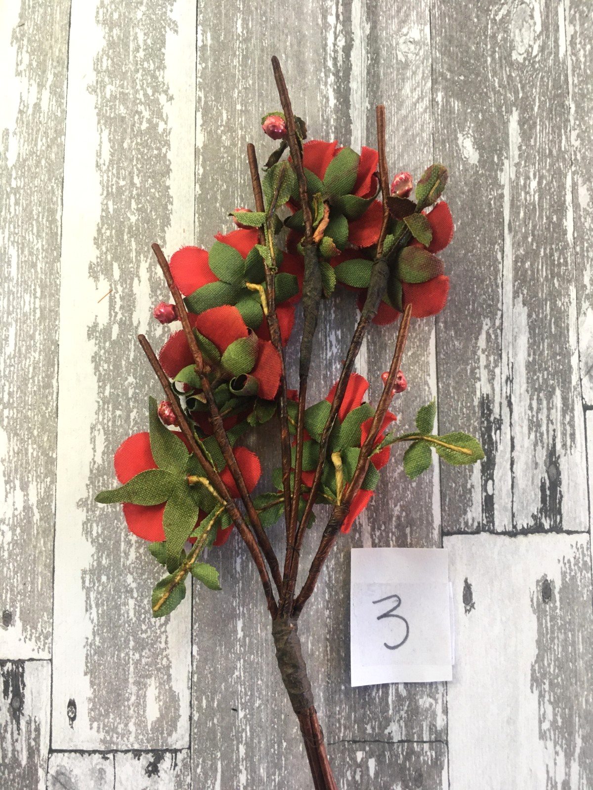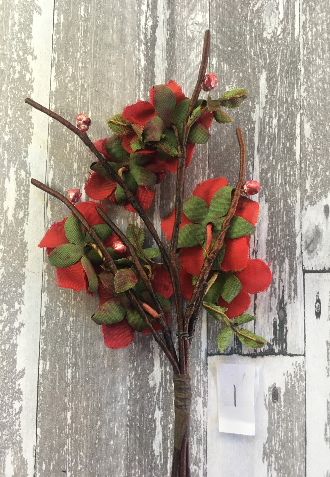 как выглядит Antique Vintage Millinery Velvet Spray of Flowers Red with Pearlized Berries фото