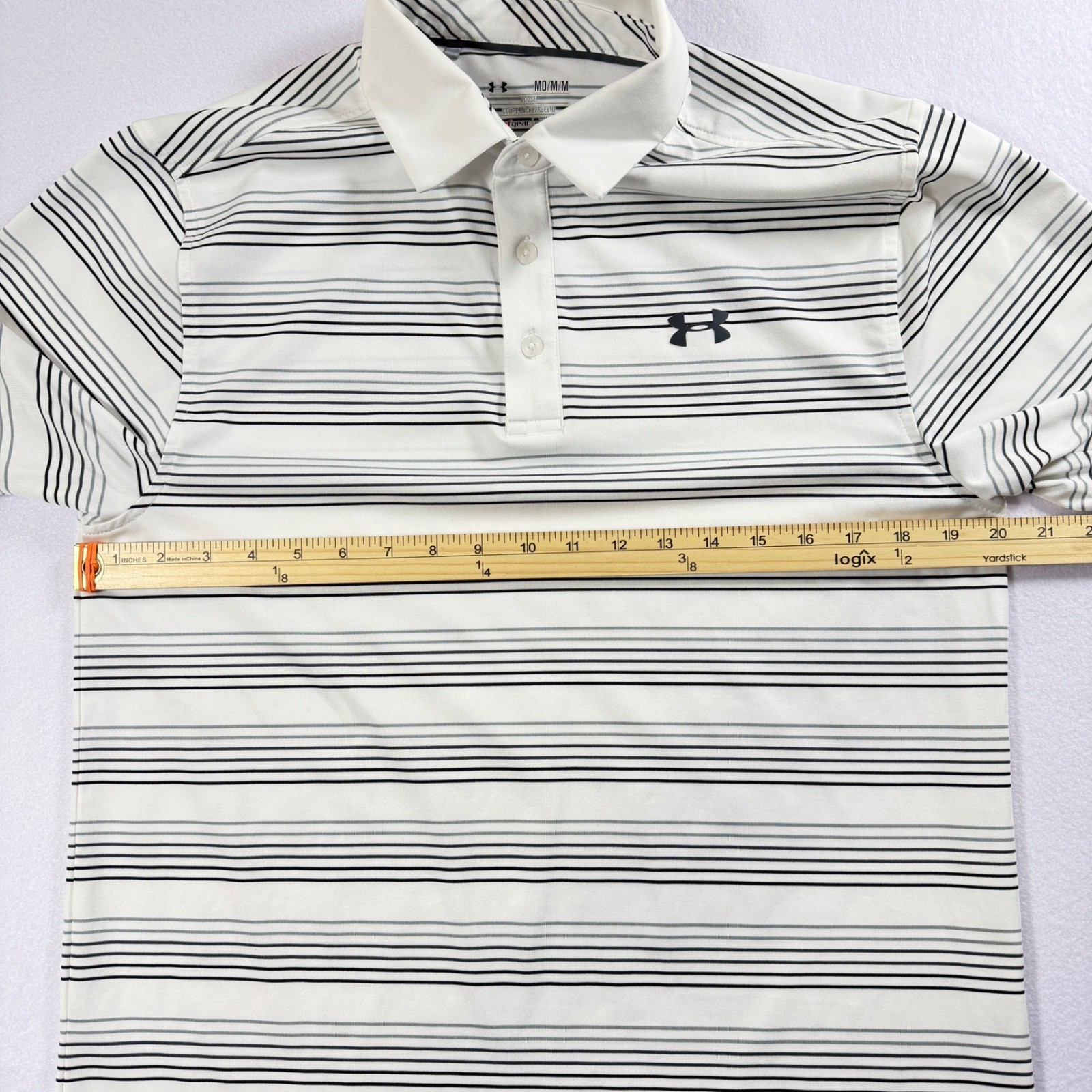 Under Armour HeatGear Mens Golf Polo Shirt Loose Fit Medium Striped Short Sleeve