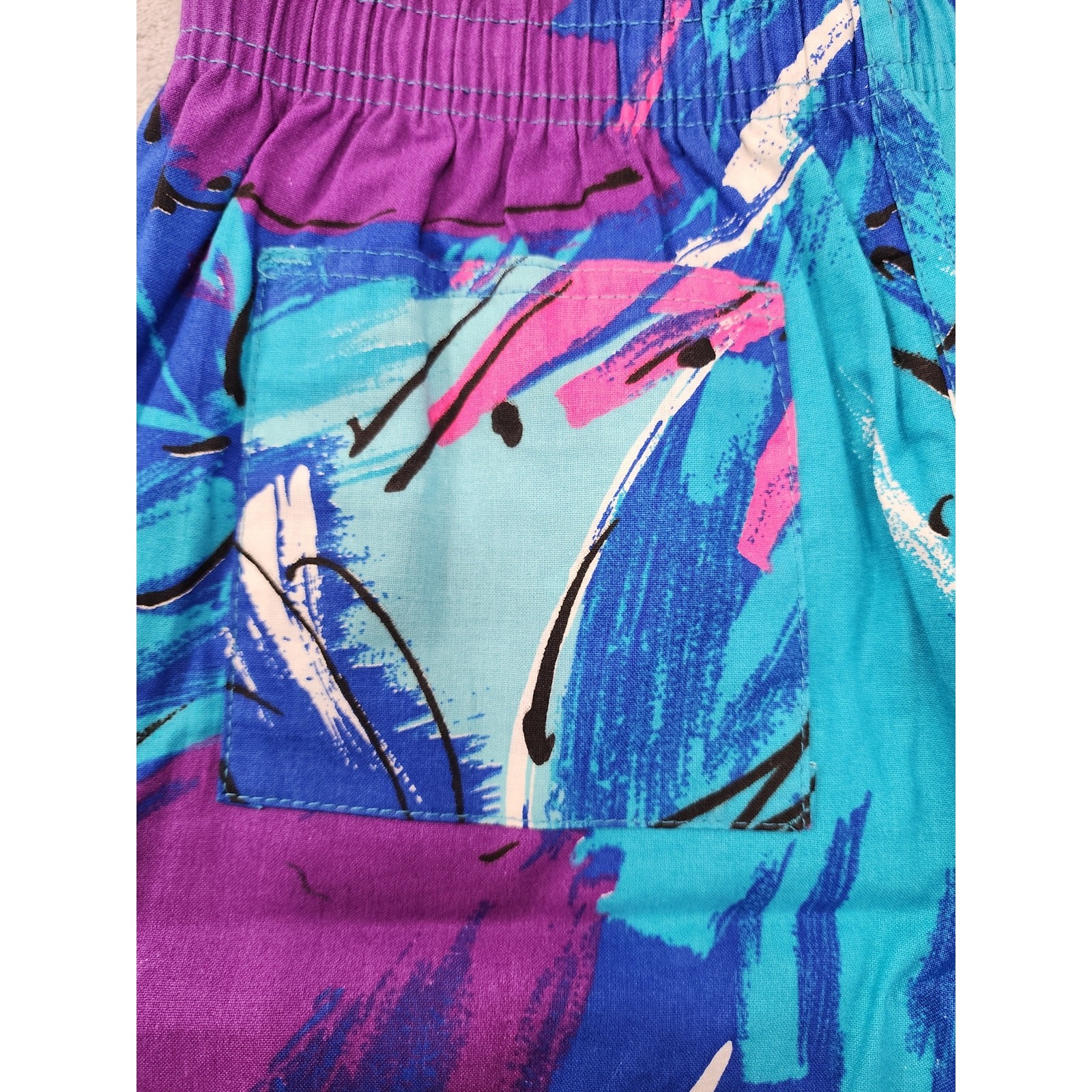 Vintage 80s JCPenney High Waist Pull On Shorts Size L Blue Pink Purple Splatter