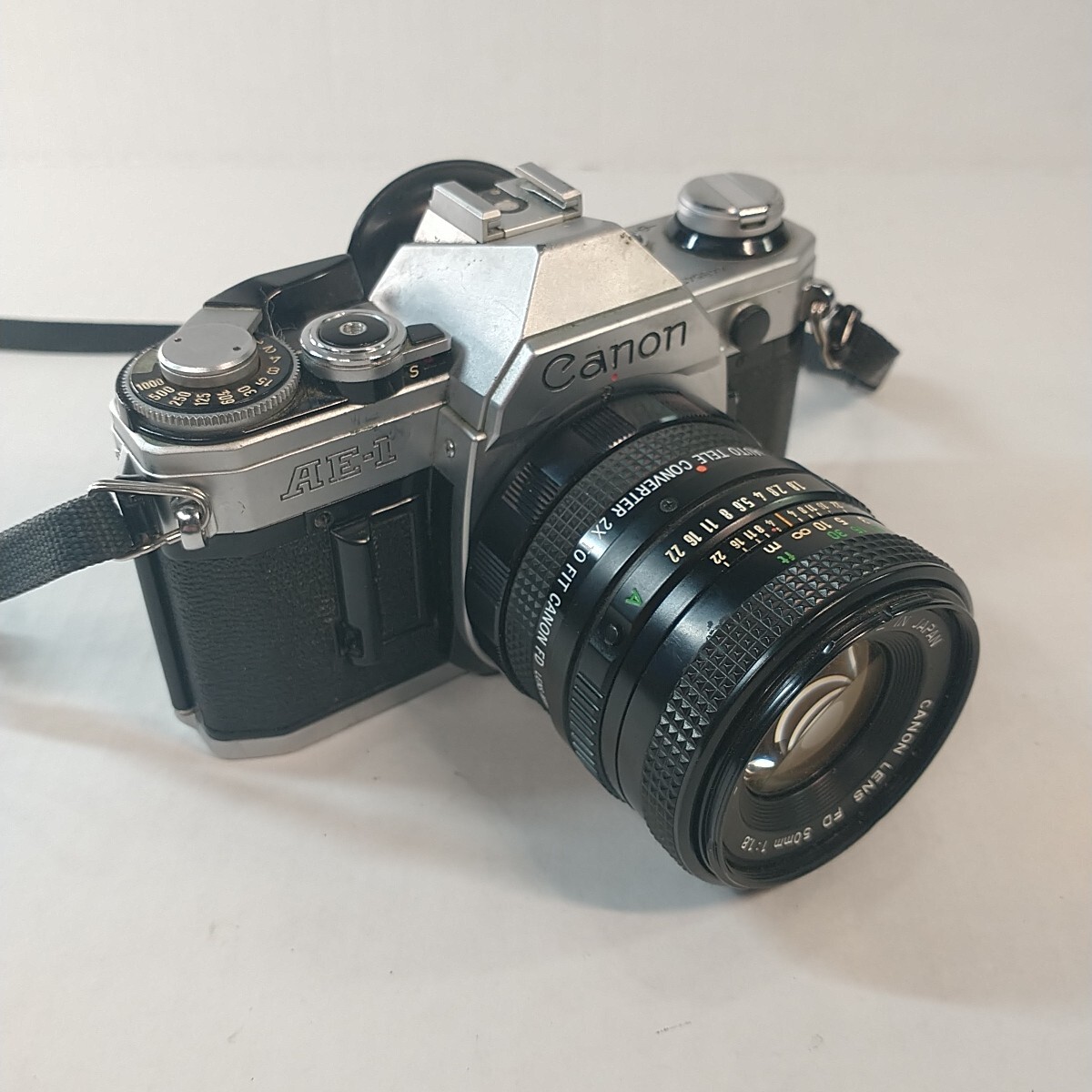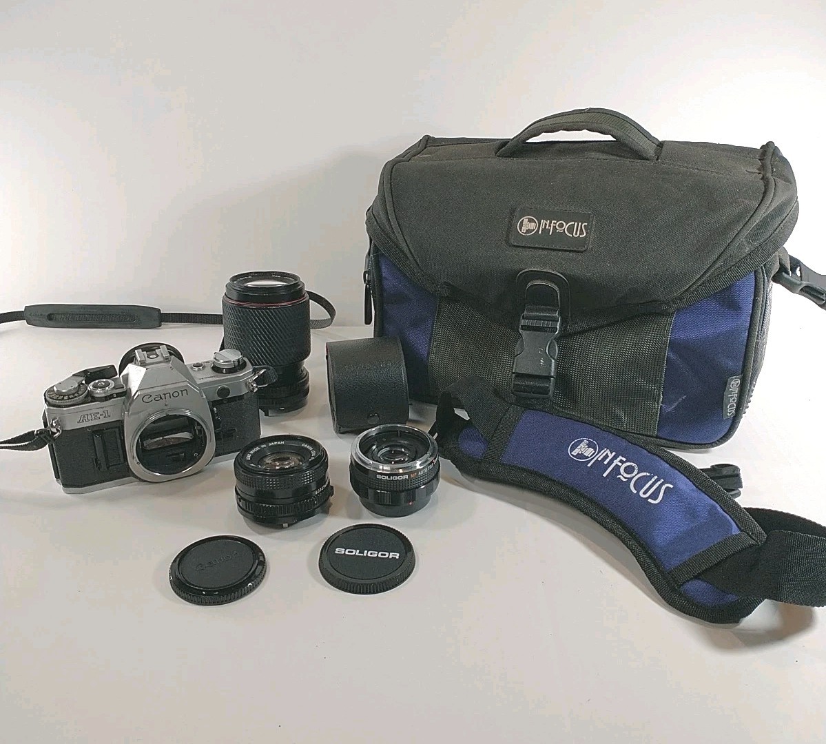 Canon AE-1 35mm SLR Film Camera 50mm 70-210mm Teleconverter Strap Bag