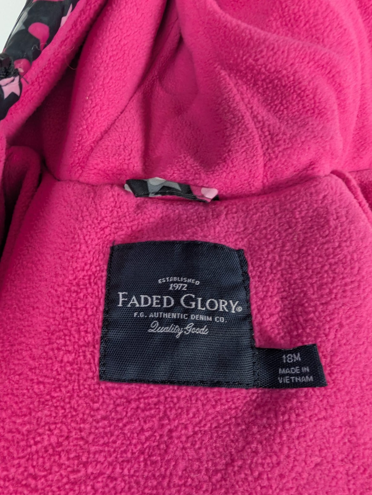 Faded Glory Black, Pink, White Girls Winter Jacket Sz 18 Mons-Up