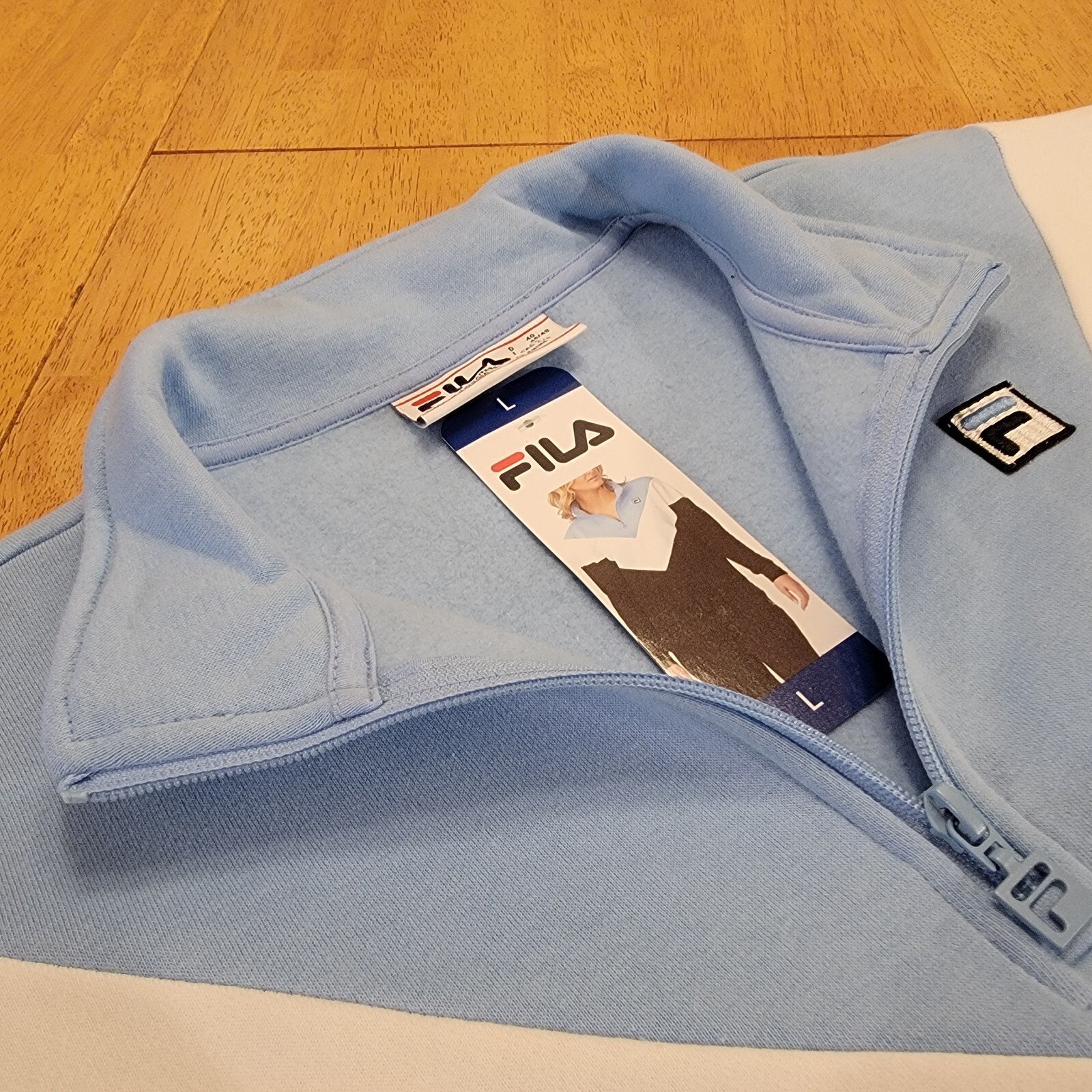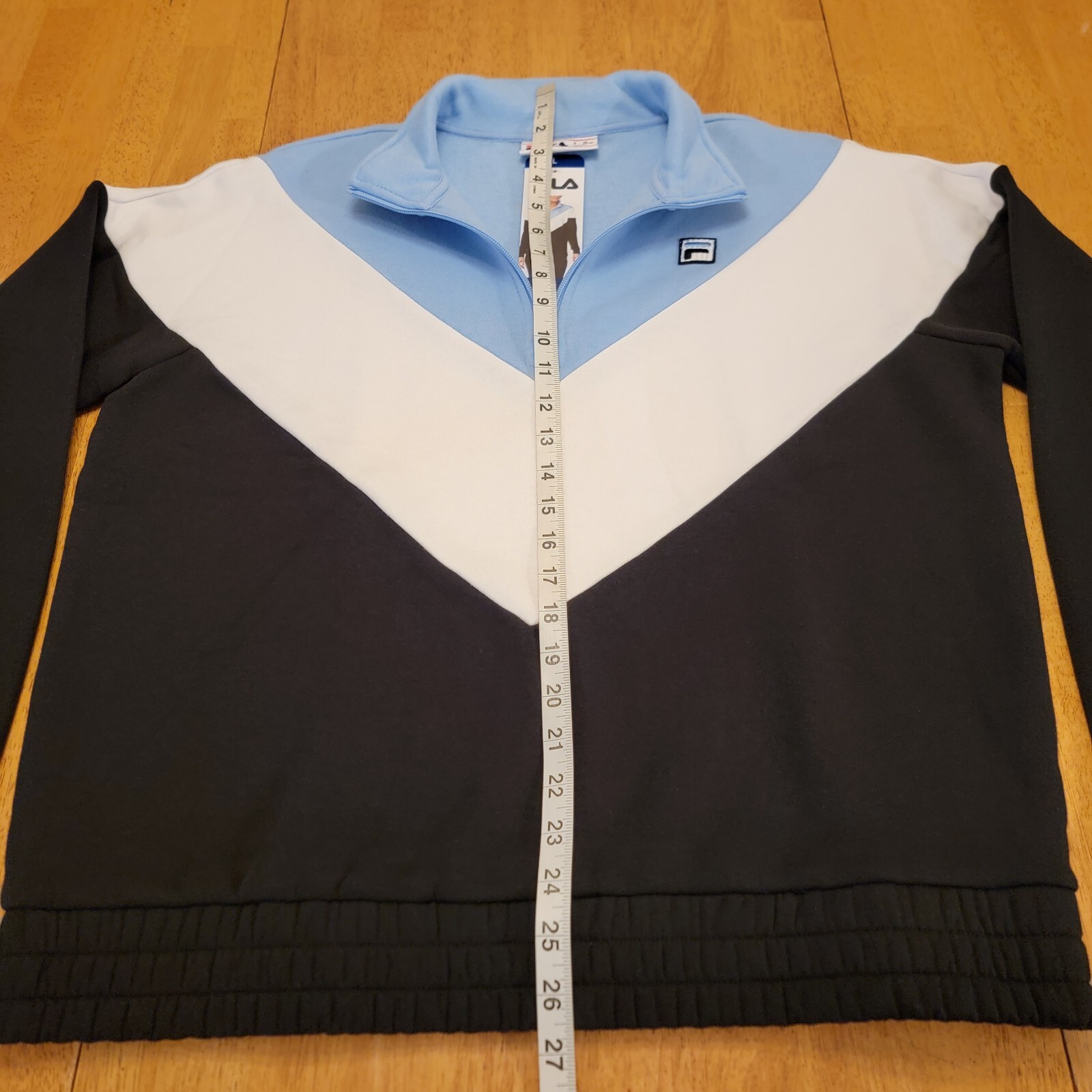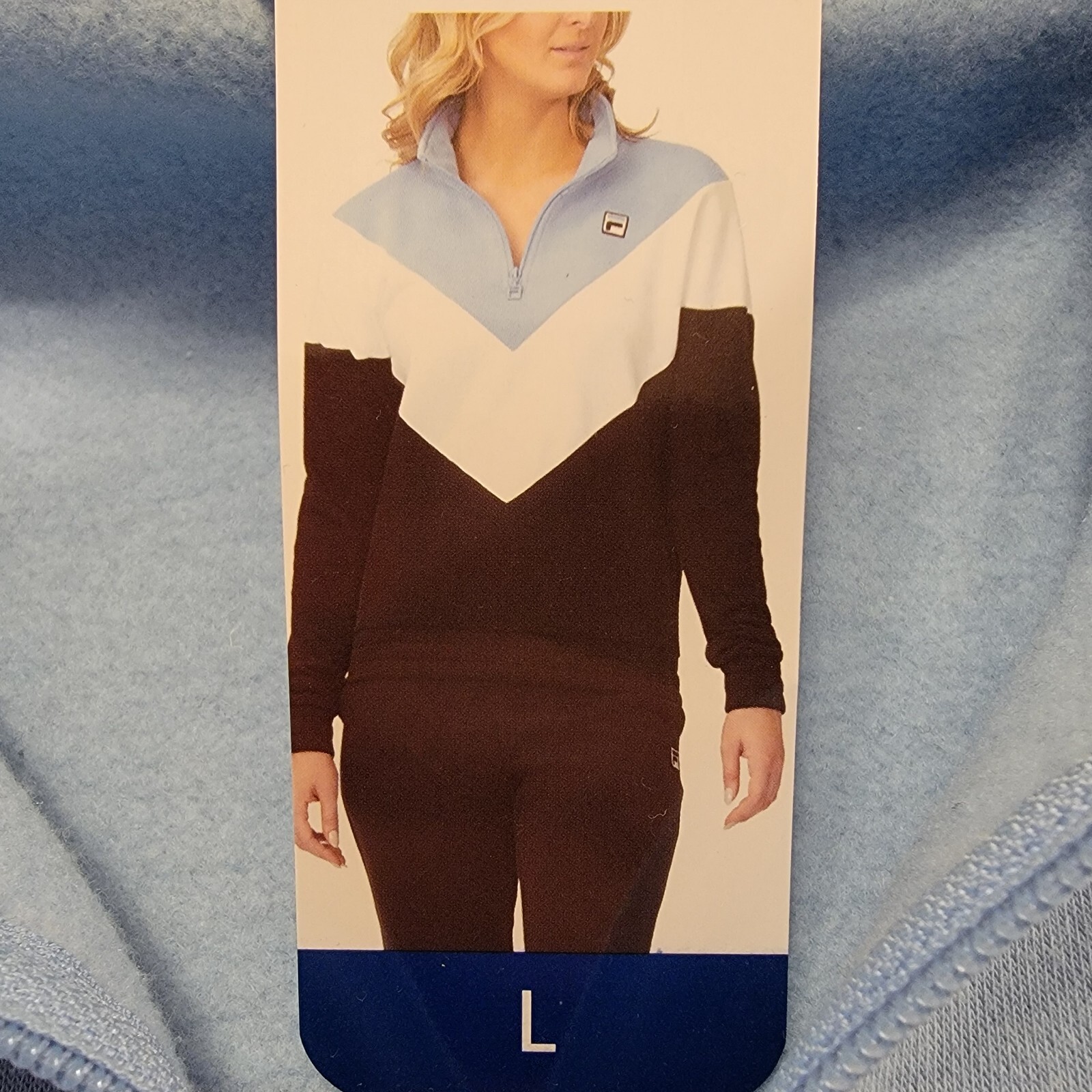 Fila 1/4 Zip Pullover Sweatshirt Women's L Blue Colorblock Chevron Fleece NWT