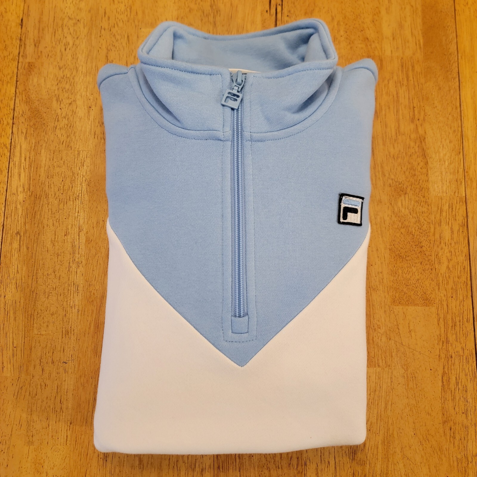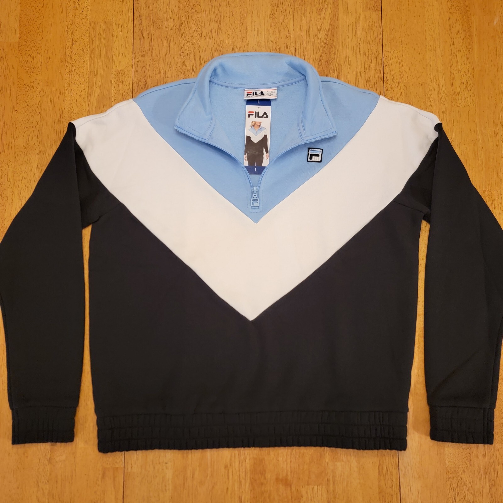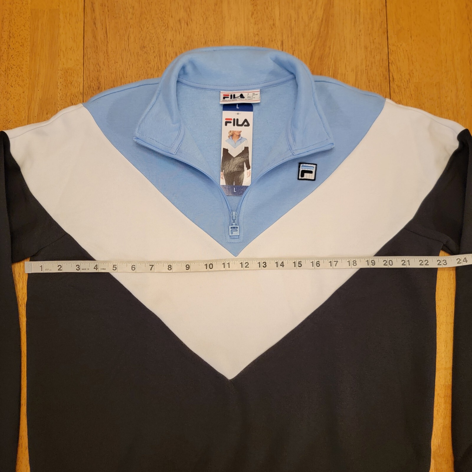 Fila 1/4 Zip Pullover Sweatshirt Women's L Blue Colorblock Chevron Fleece NWT