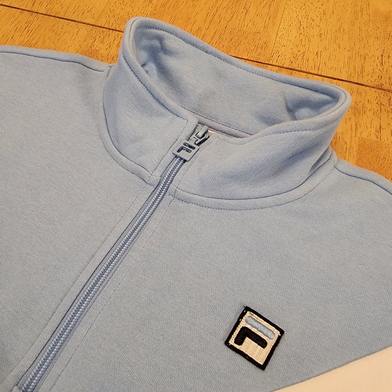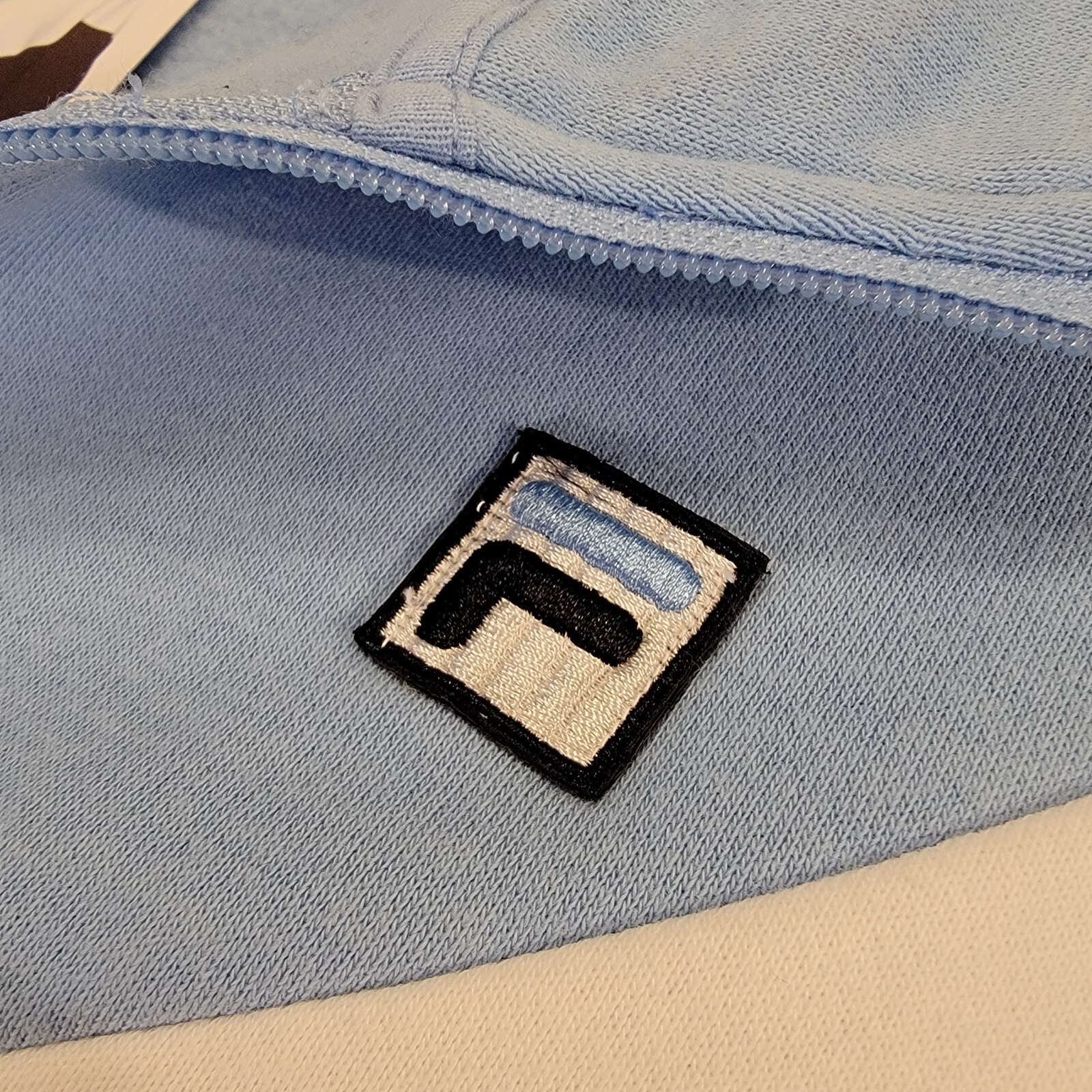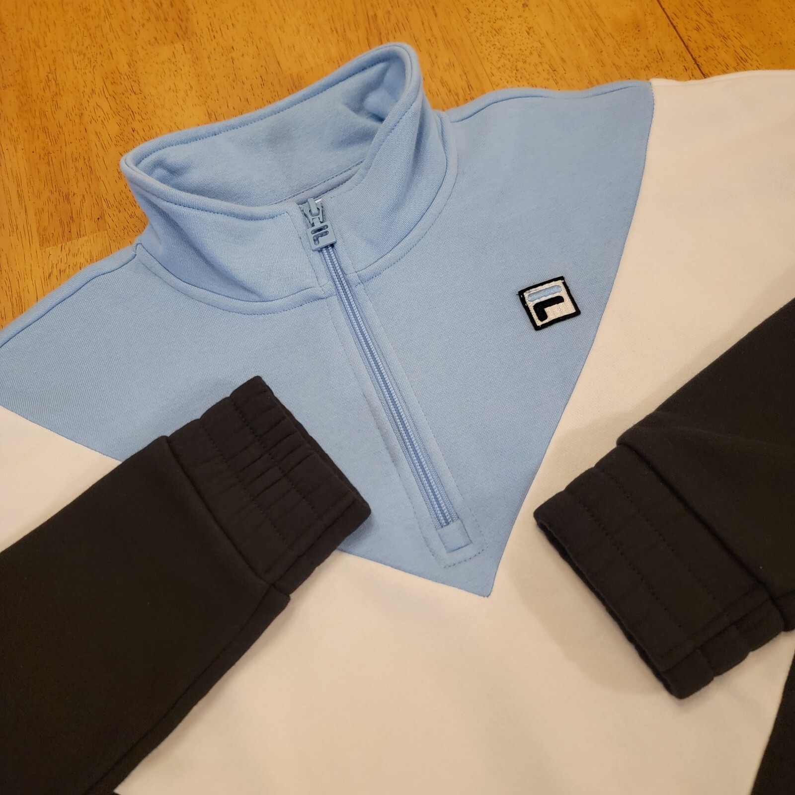 как выглядит Fila 1/4 Zip Pullover Sweatshirt Womens L Blue Colorblock Chevron Fleece NWT фото