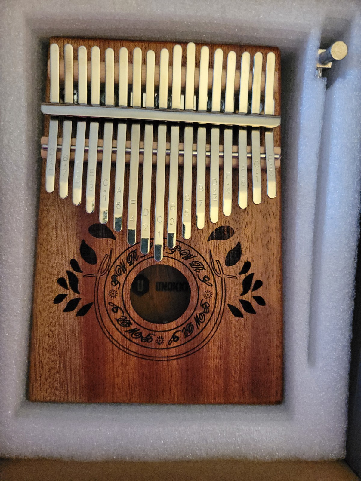 как выглядит Mahogany Kalimba 17 Key Thumb Piano New Open Box Light Brown Unokki Brand фото
