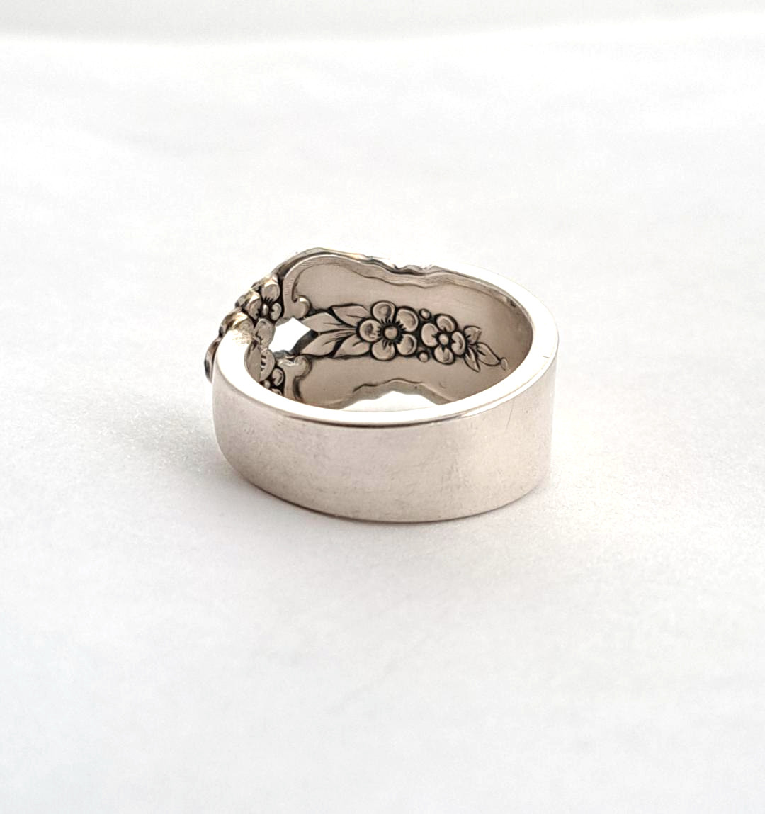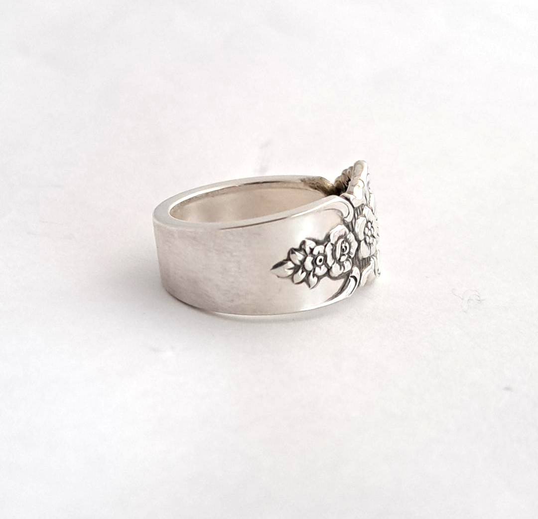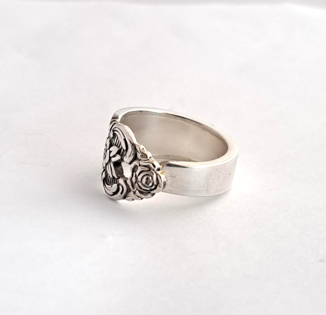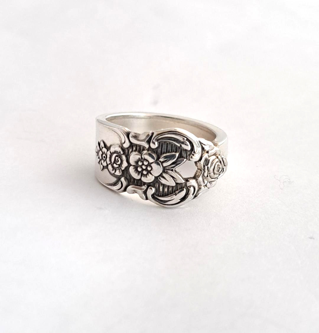 Distinction Handmade Spoon Ring Size 10 Vtg Pierced Jewelry Floral Flower 1951