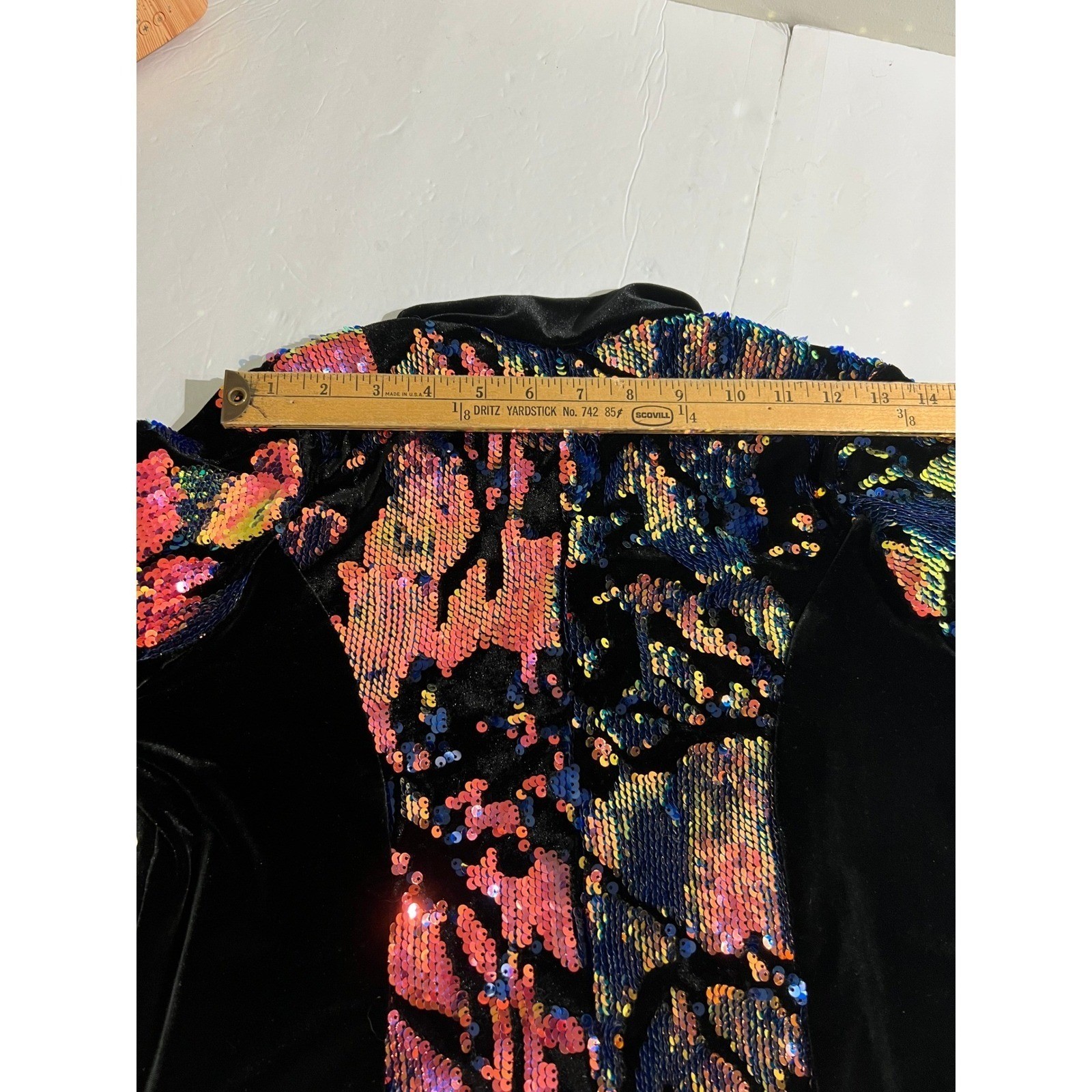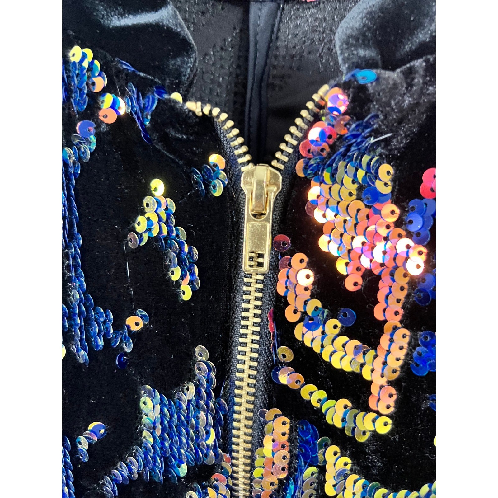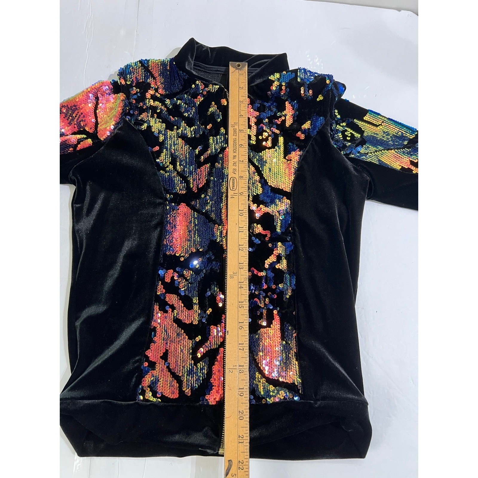 Weissman Black Velvet Sequin Bomber Jacket Rainbow Sparkle Dance Costume Top