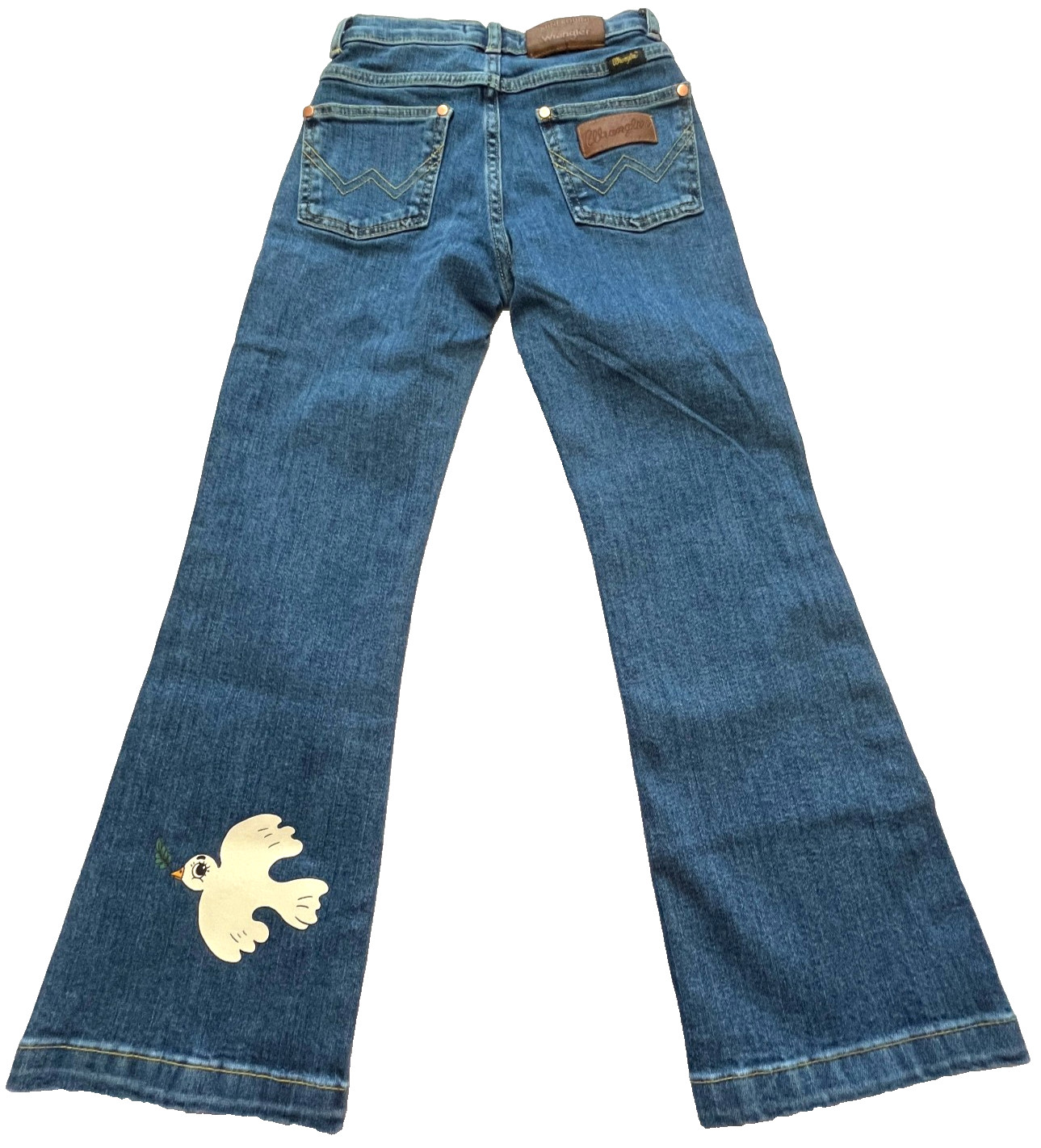 как выглядит Mini Rodini X Wrangler Jean Girls 7-9 Yrs. Sz. 9-10 Dove Organic Cotton Flared фото