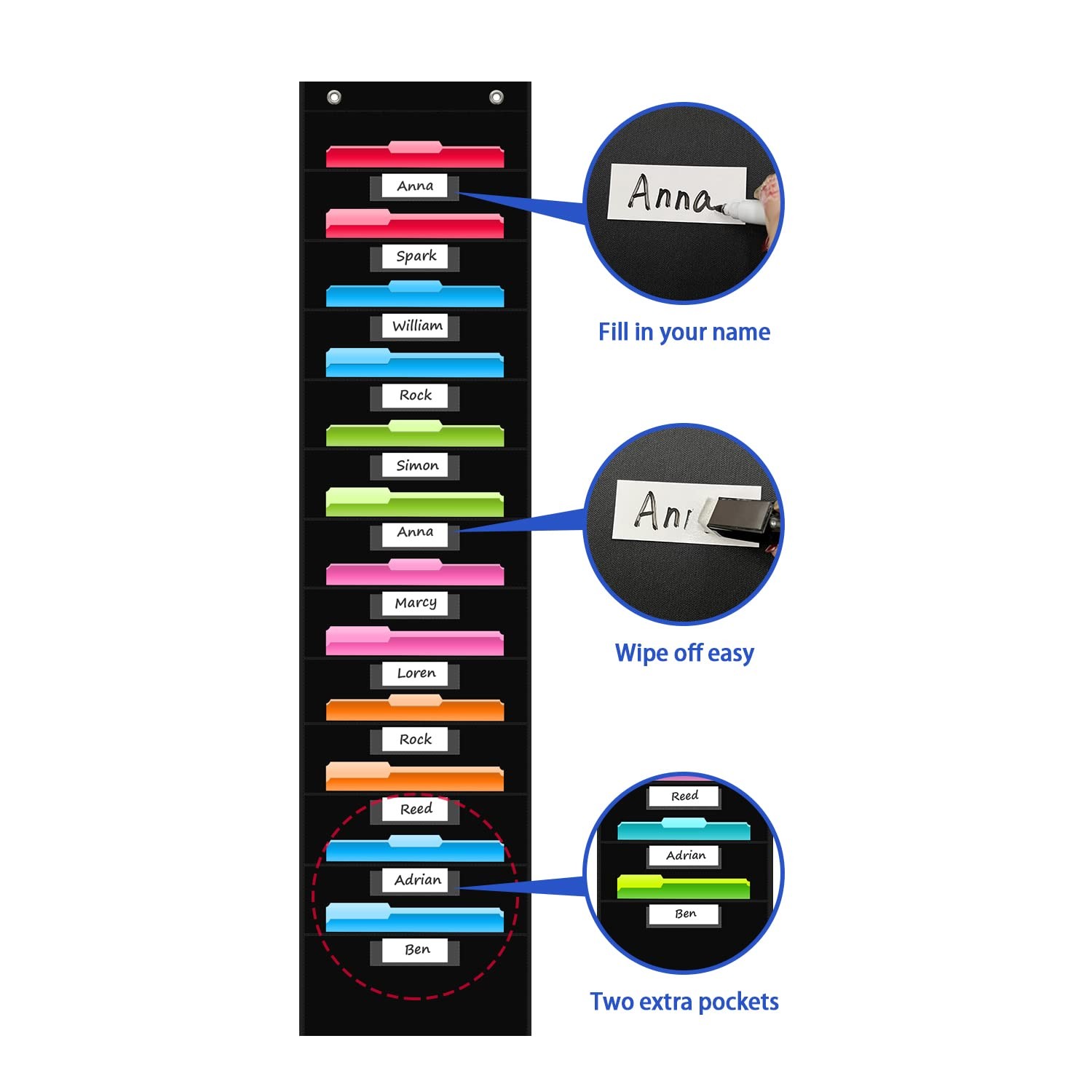 12 Pockets File Storage Pocket Chart Hanging Wall Organizer Classroom Black