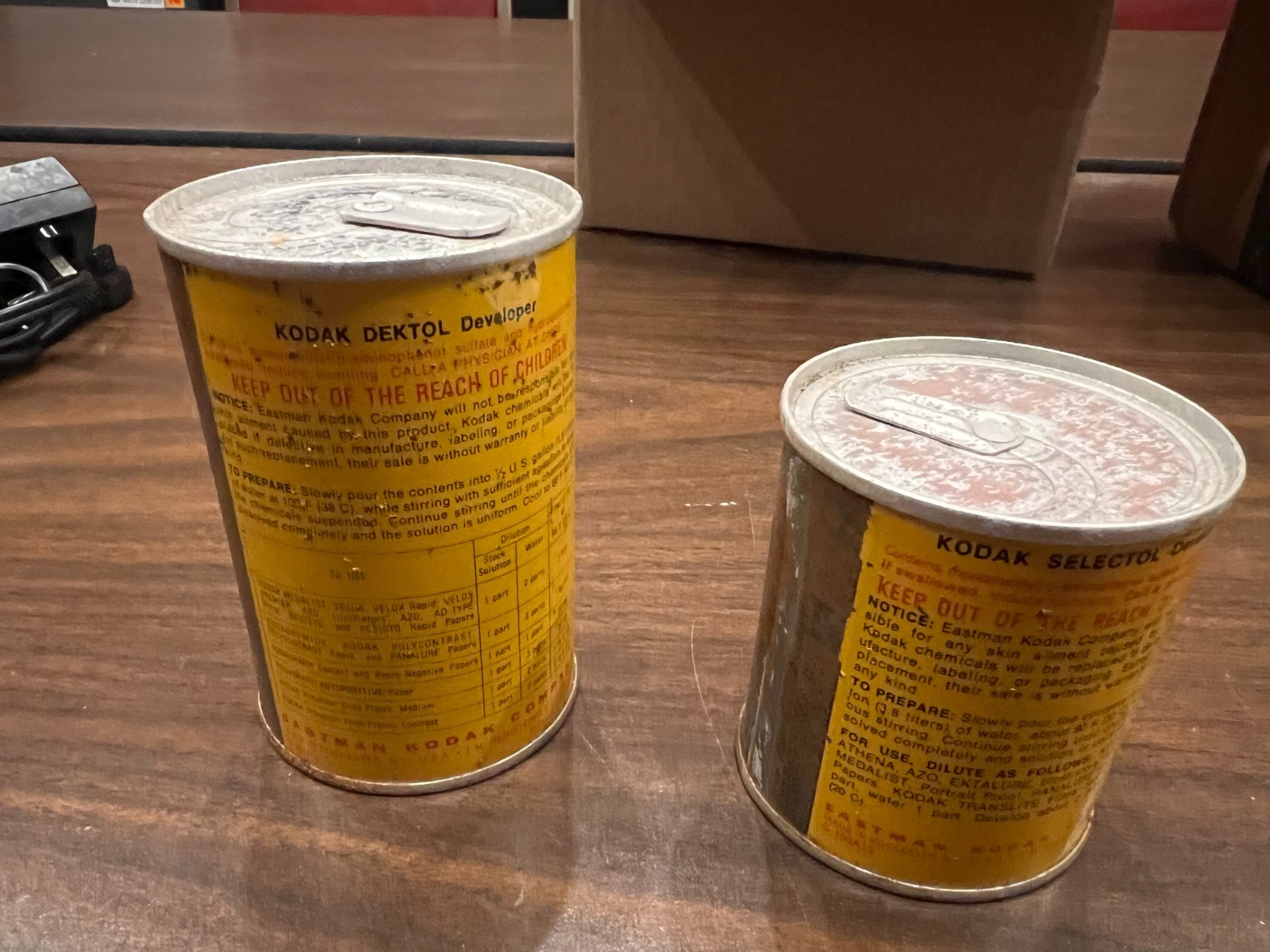 Vintage Kodak Dektol and Selectol Developer cans sealed expired