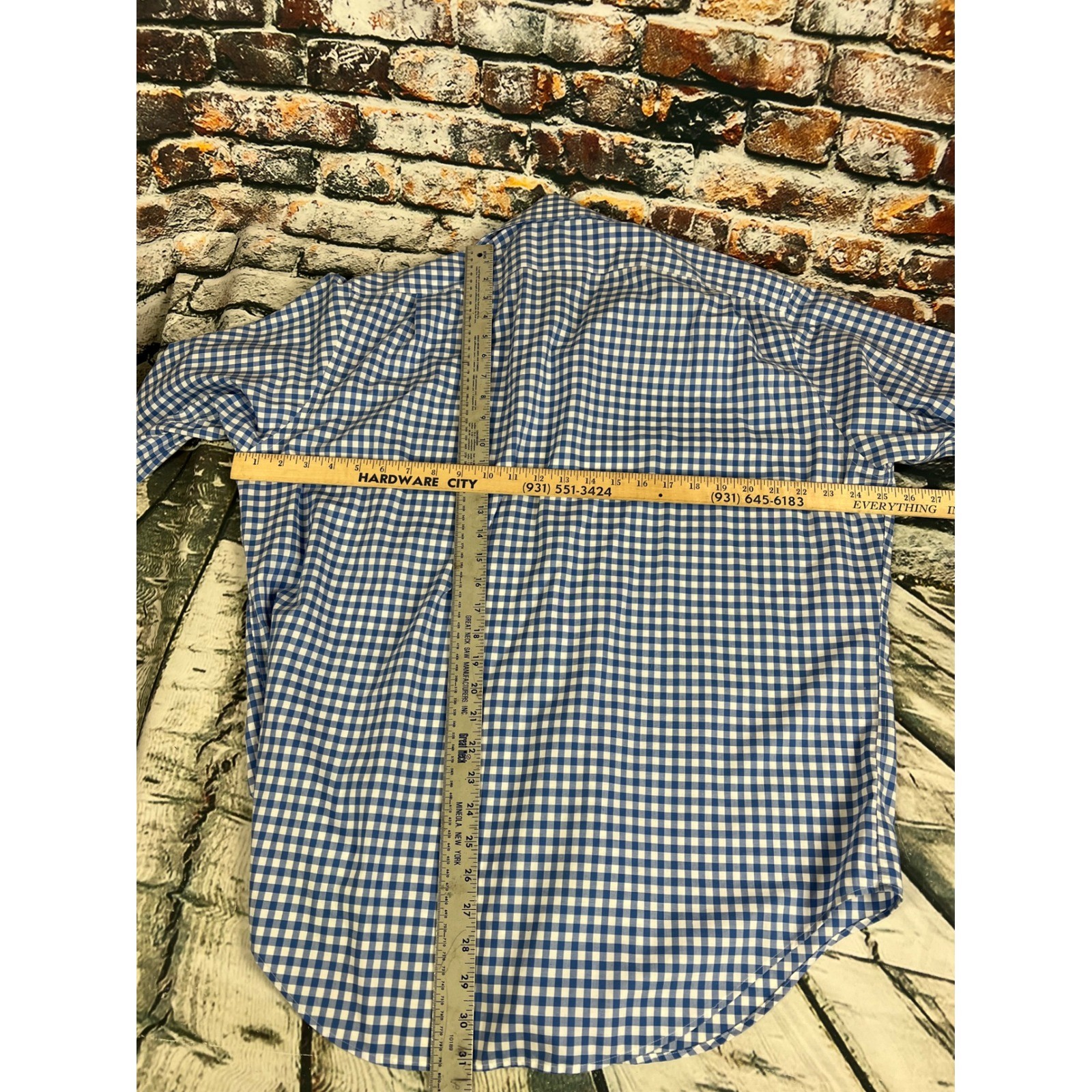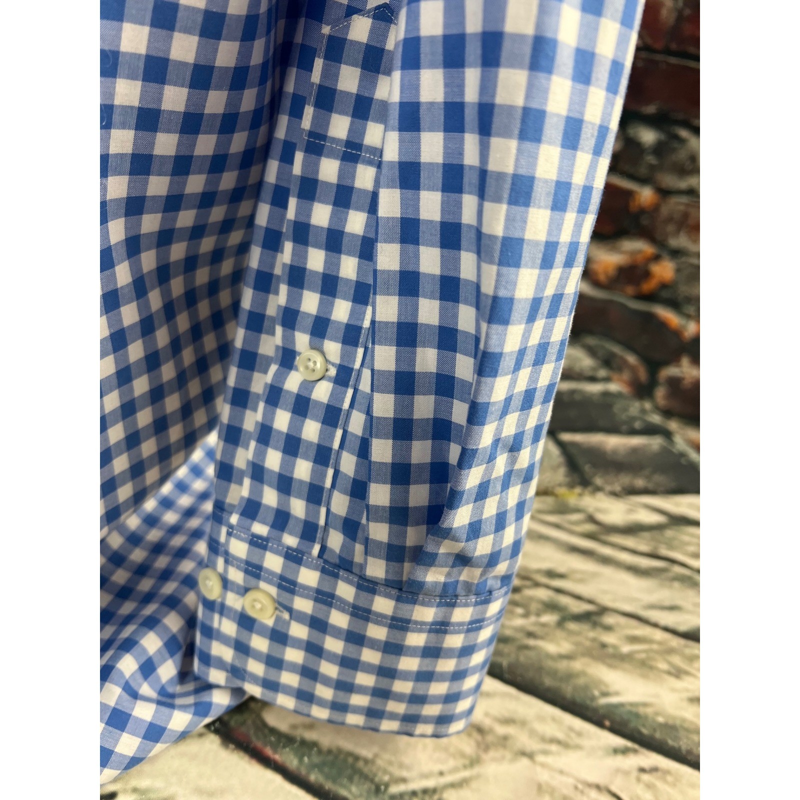 как выглядит LAUREN RALPH LAUREN Classic Fit Blue Gingham Non Iron Dress Shirt 16 1/2 32 33 фото