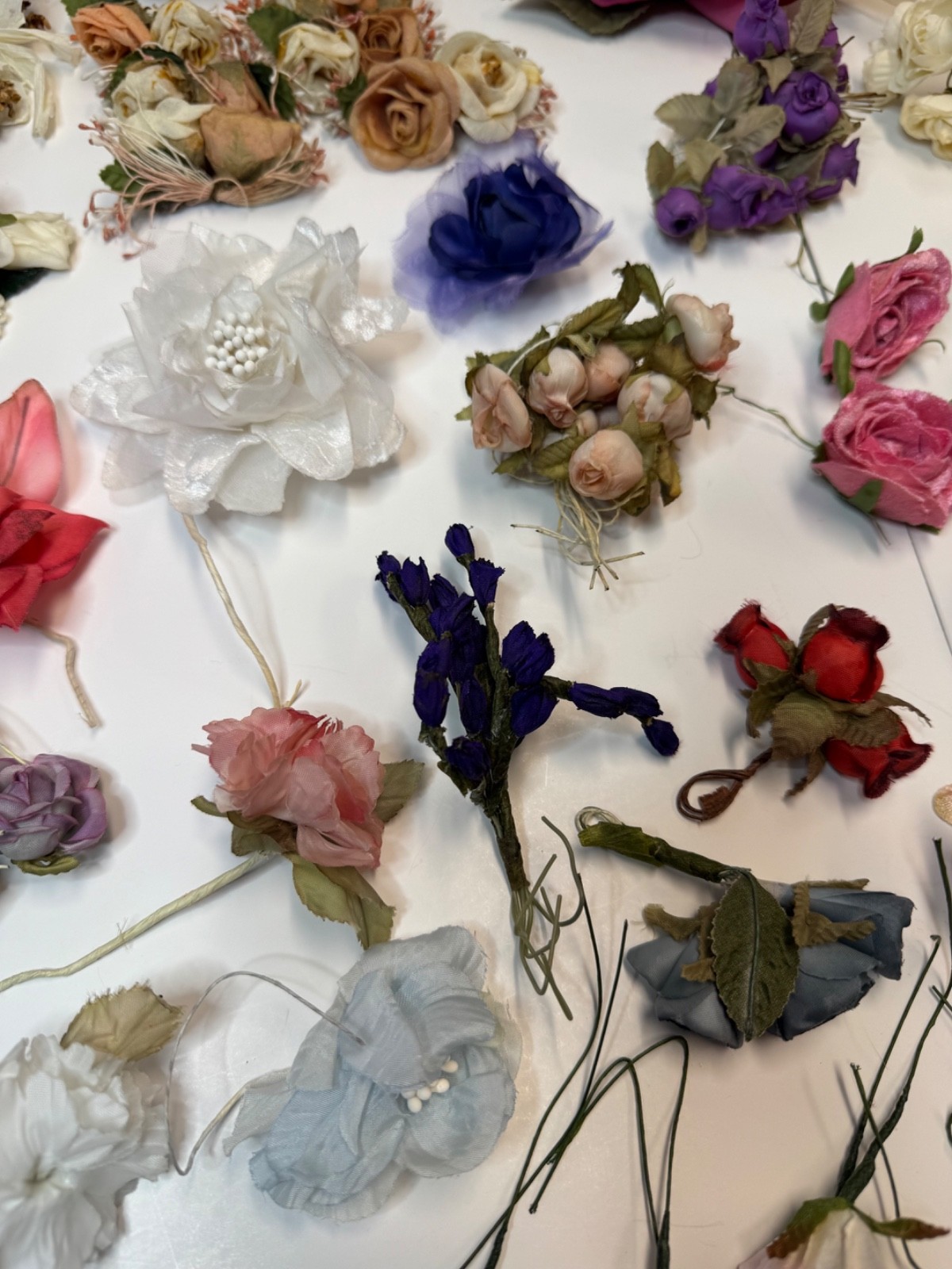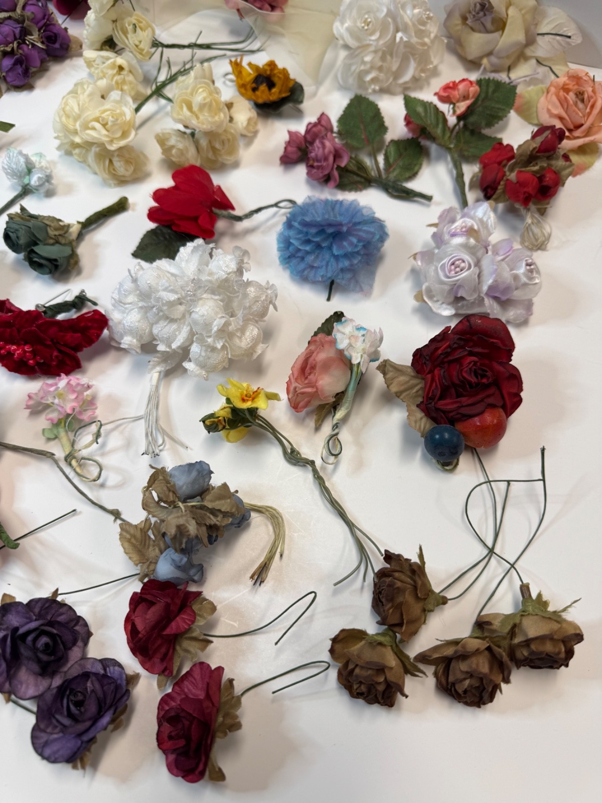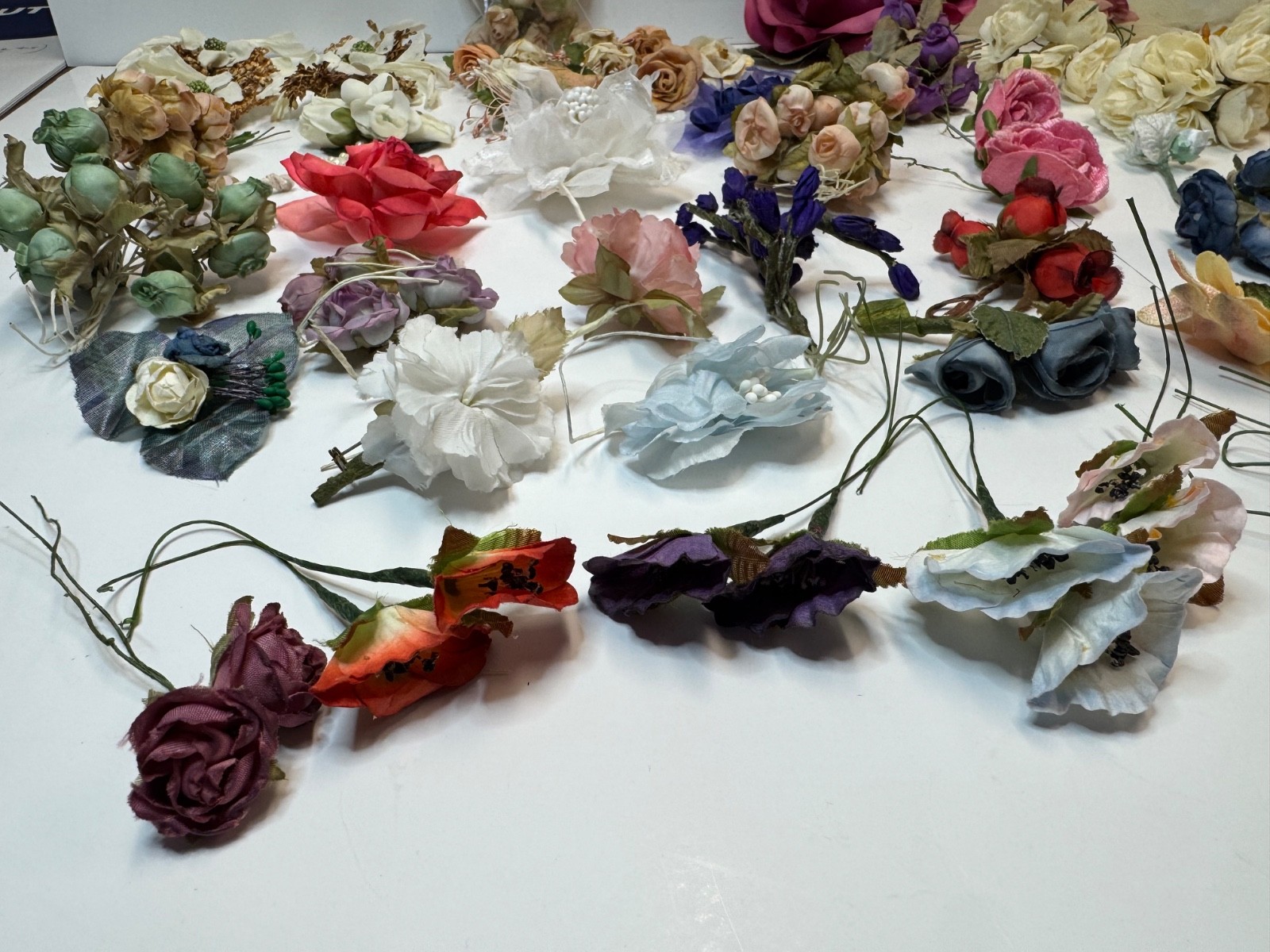 Lot of 100 assorted Vintage Fabric Millinery Flowers and Corsages