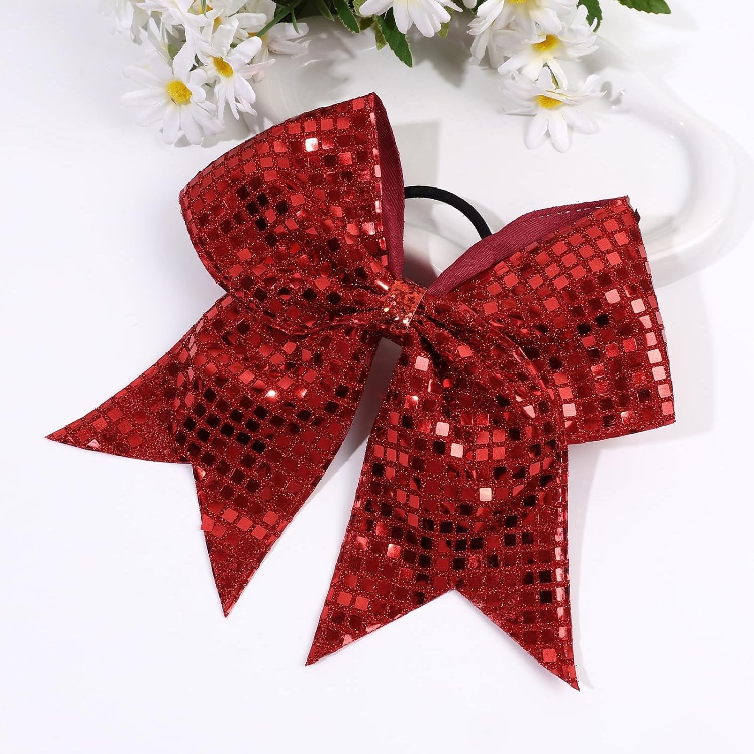 10PCS 7 Red Glitter Cheer Hair Bows for Girls Large Sequin Cheer Bows Shiny Chee