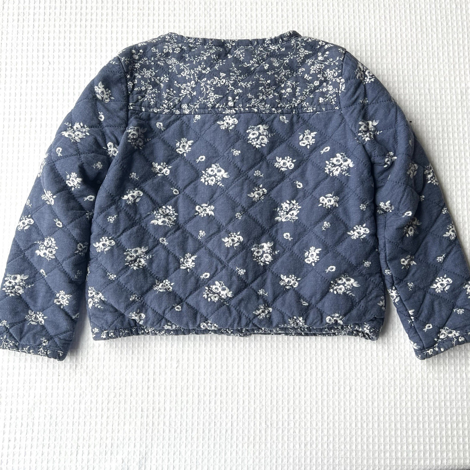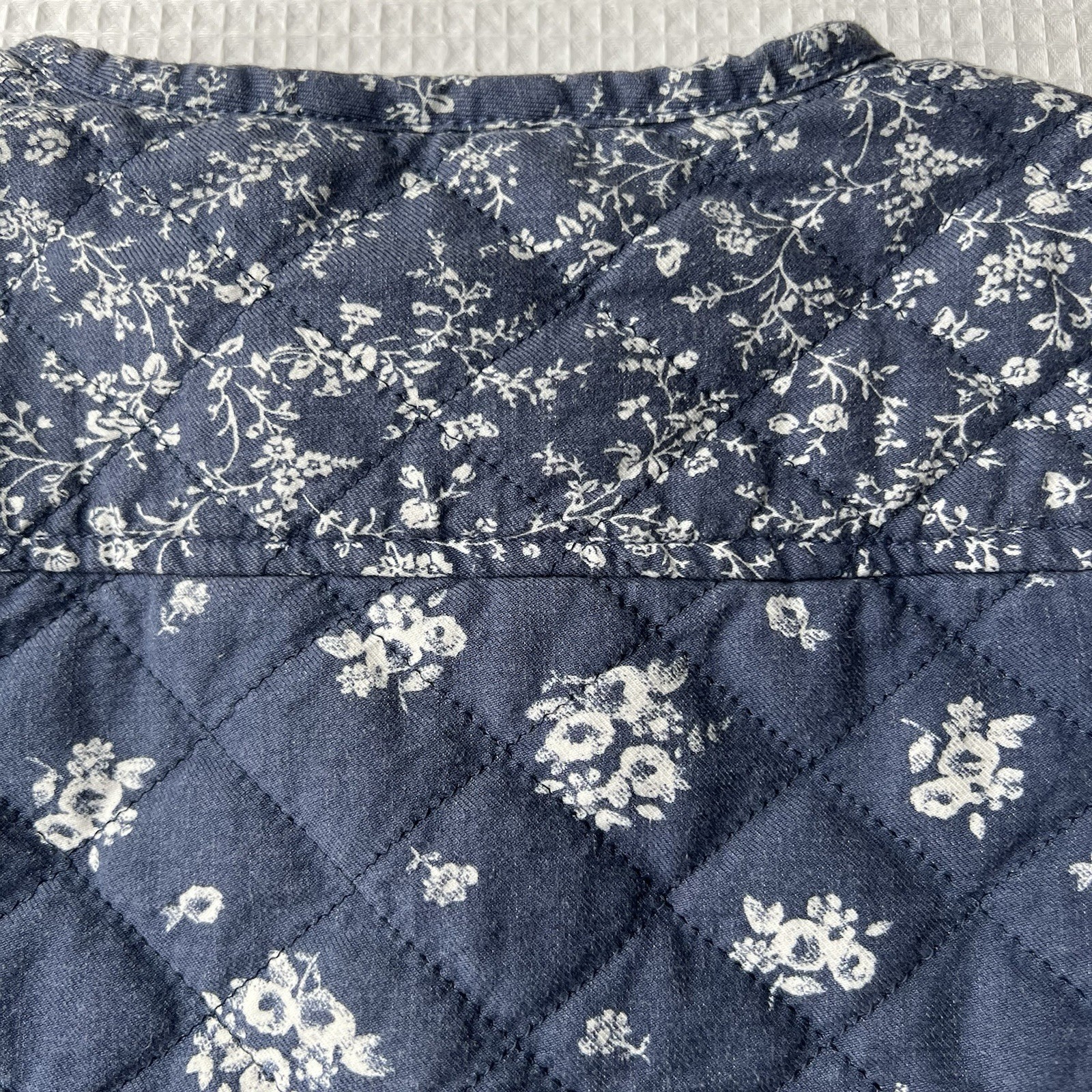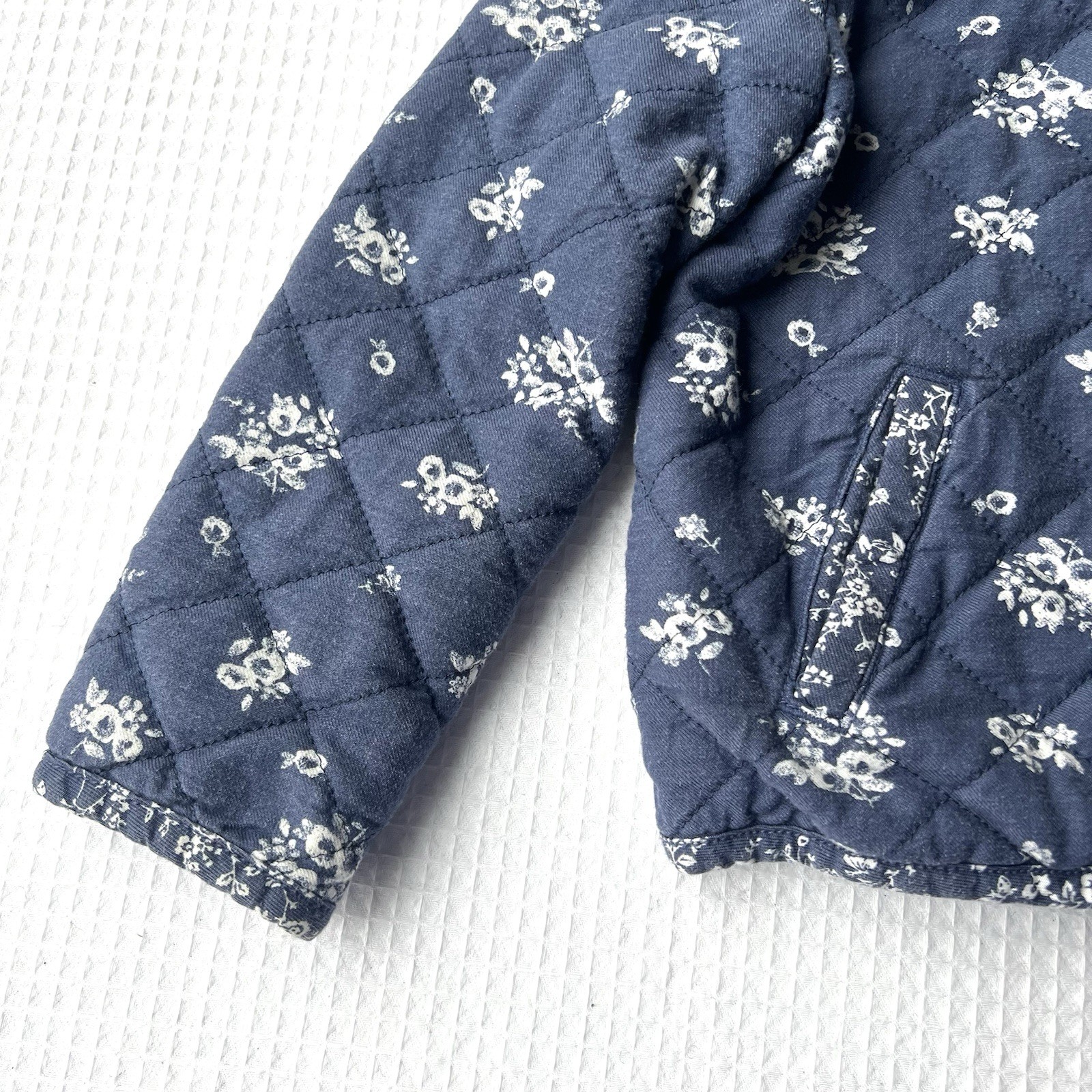 OshKosh B'gosh 4T Quilted Jacket Blue Floral Snaps Cottagecore Country Pockets