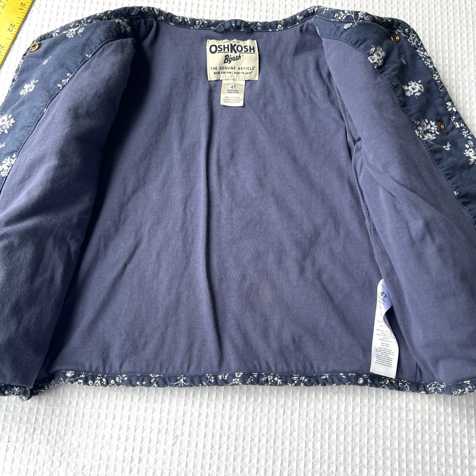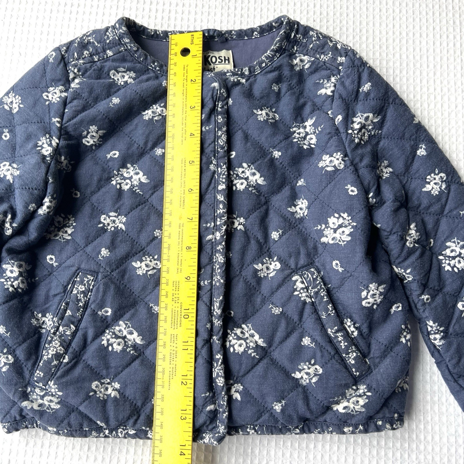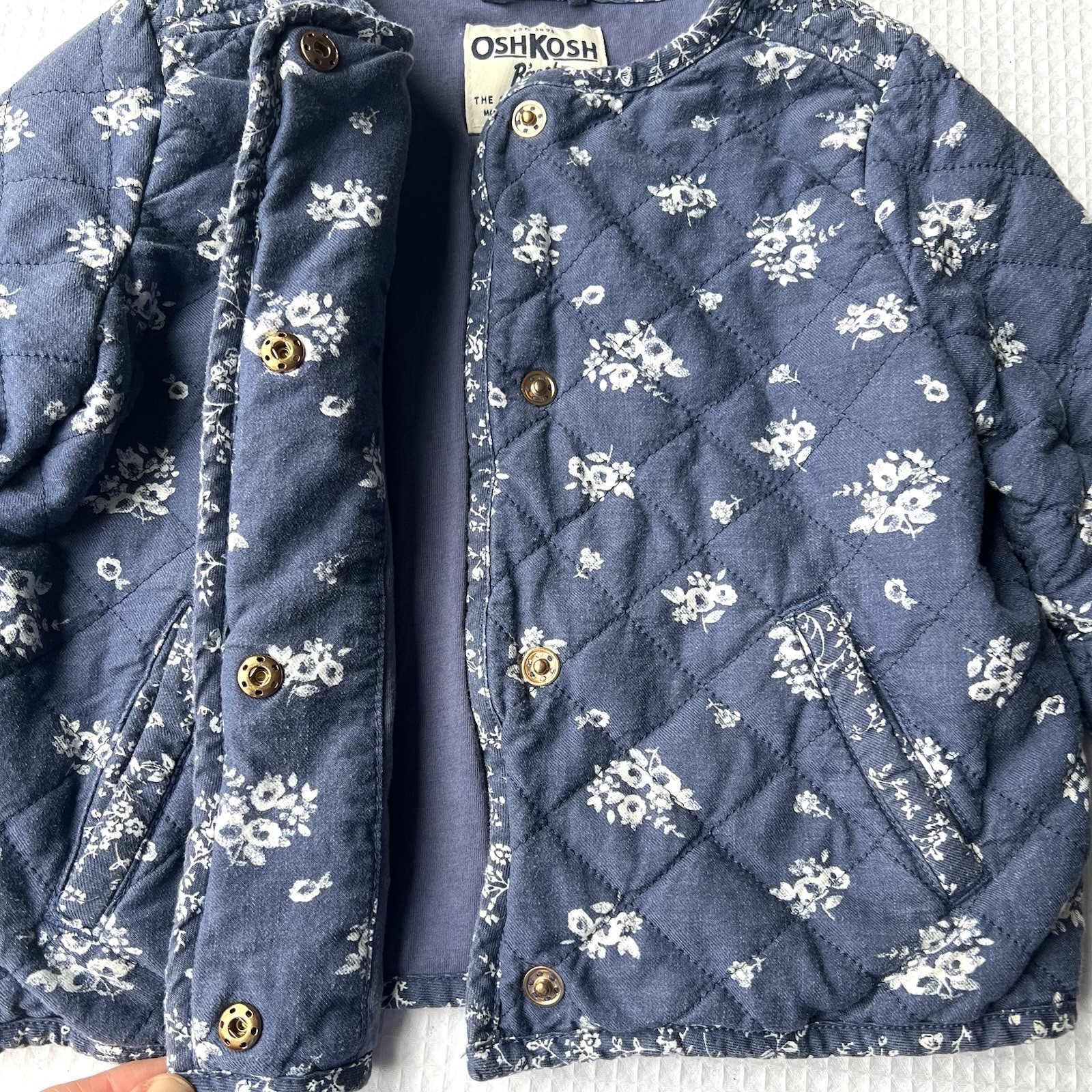 как выглядит OshKosh Bgosh 4T Quilted Jacket Blue Floral Snaps Cottagecore Country Pockets фото