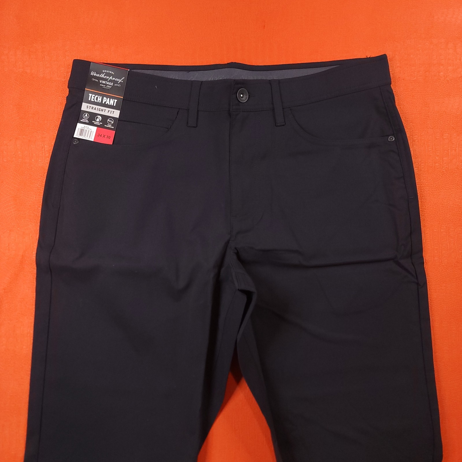 NWT Weatherproof Vintage Men's Straight Tech Water-Resist Pants Black Size 34x30