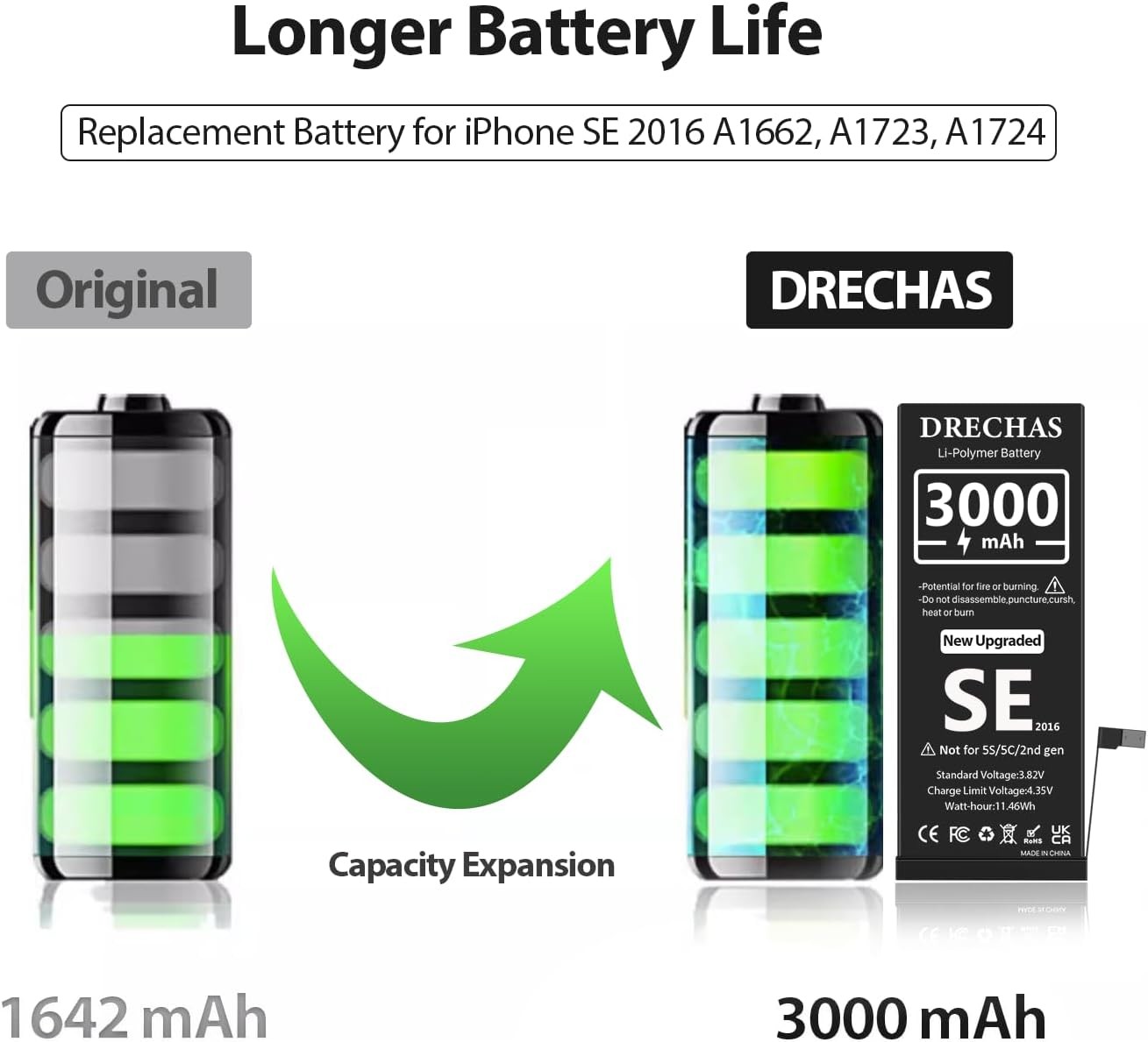 Battery for iPhone SE 2016 First Gen 3000mAh High Capacity 0 Cycle Li Polymer