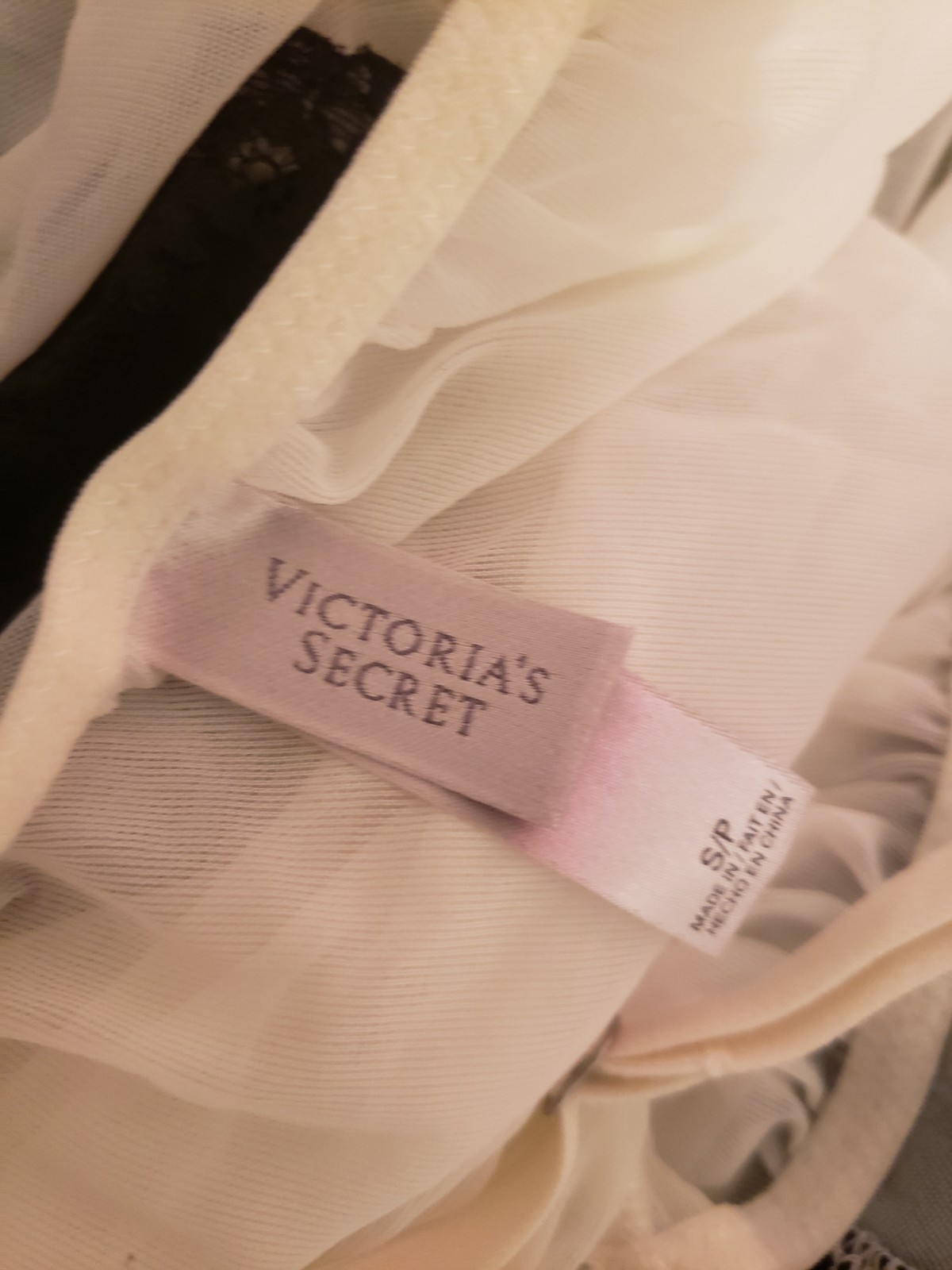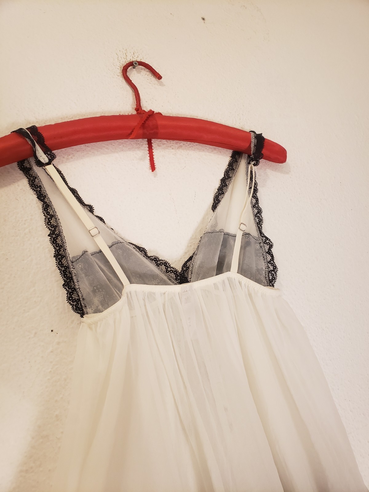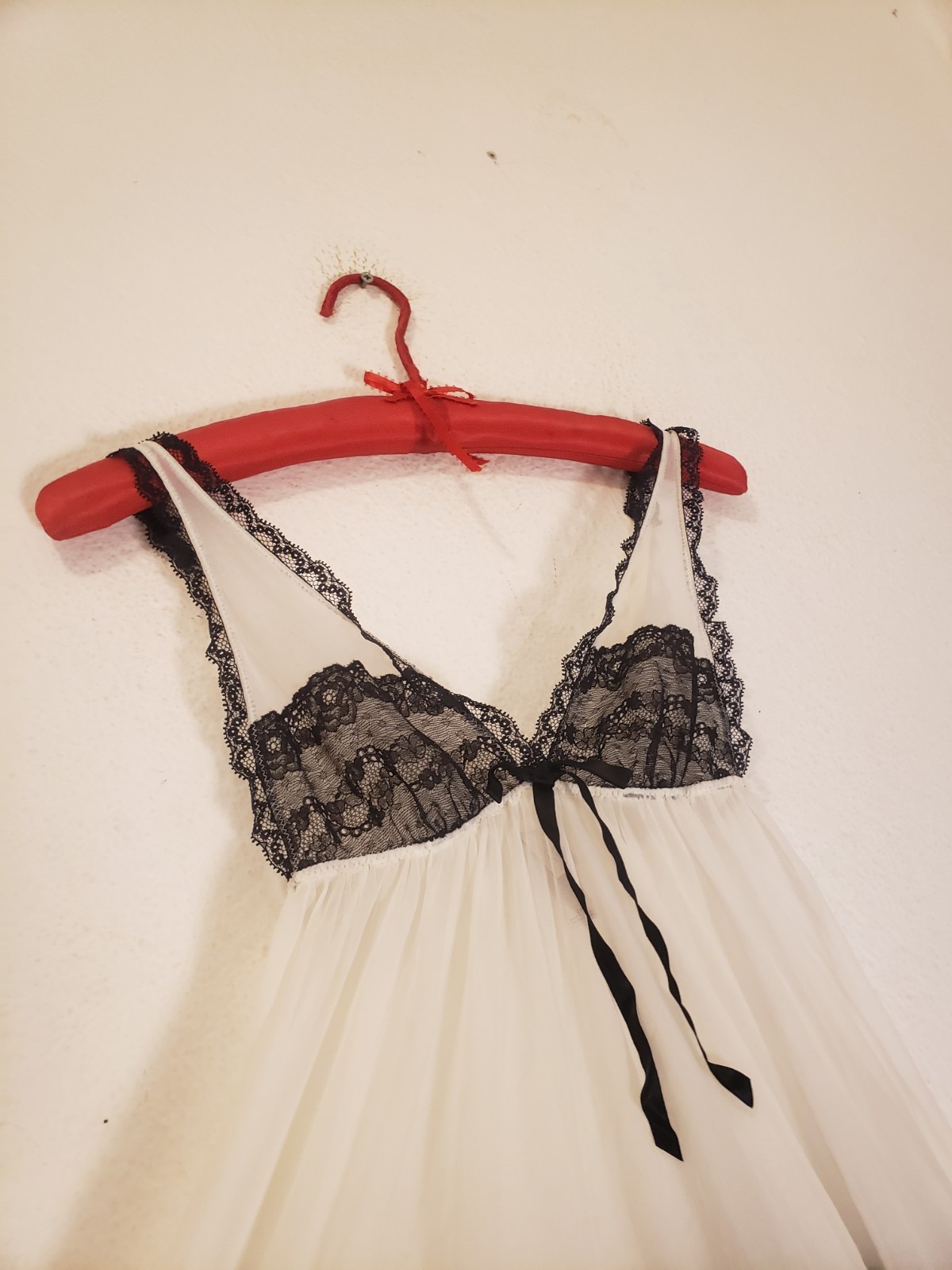 как выглядит Vtg Y2k Victorias Secret White Chiffon Babydoll Slip Black Lace Mini Coquette S фото