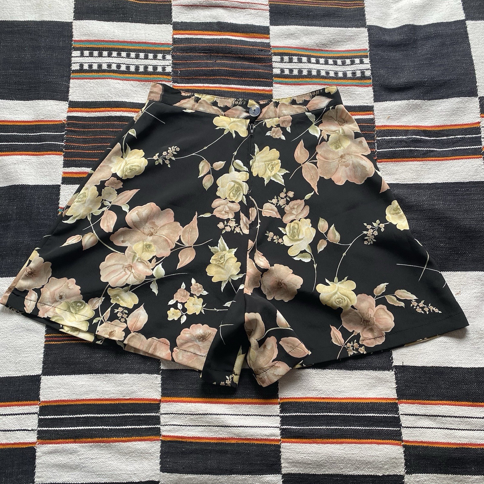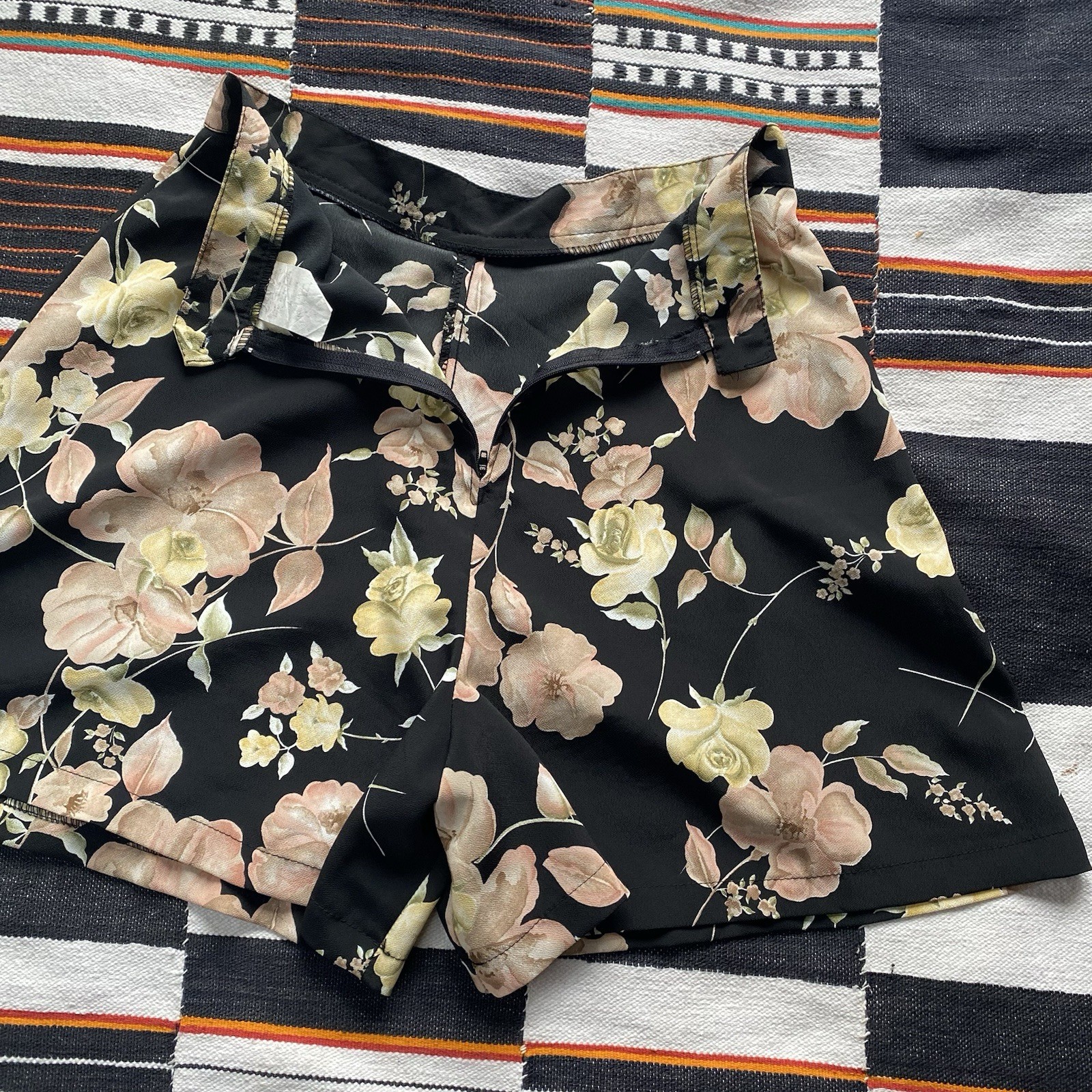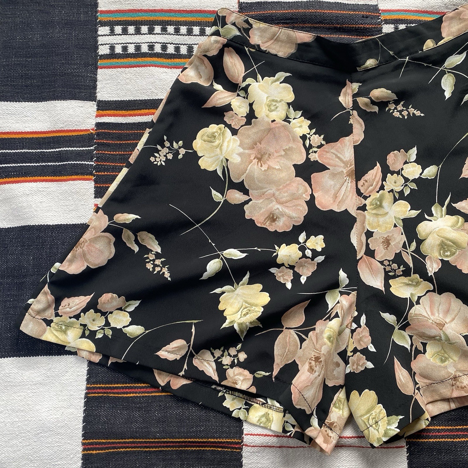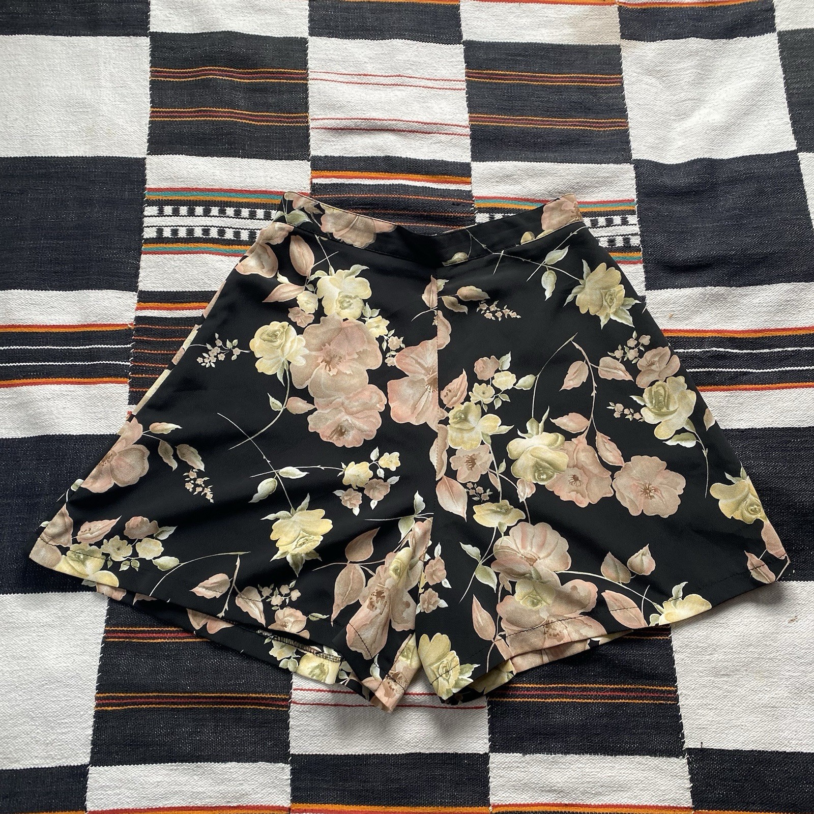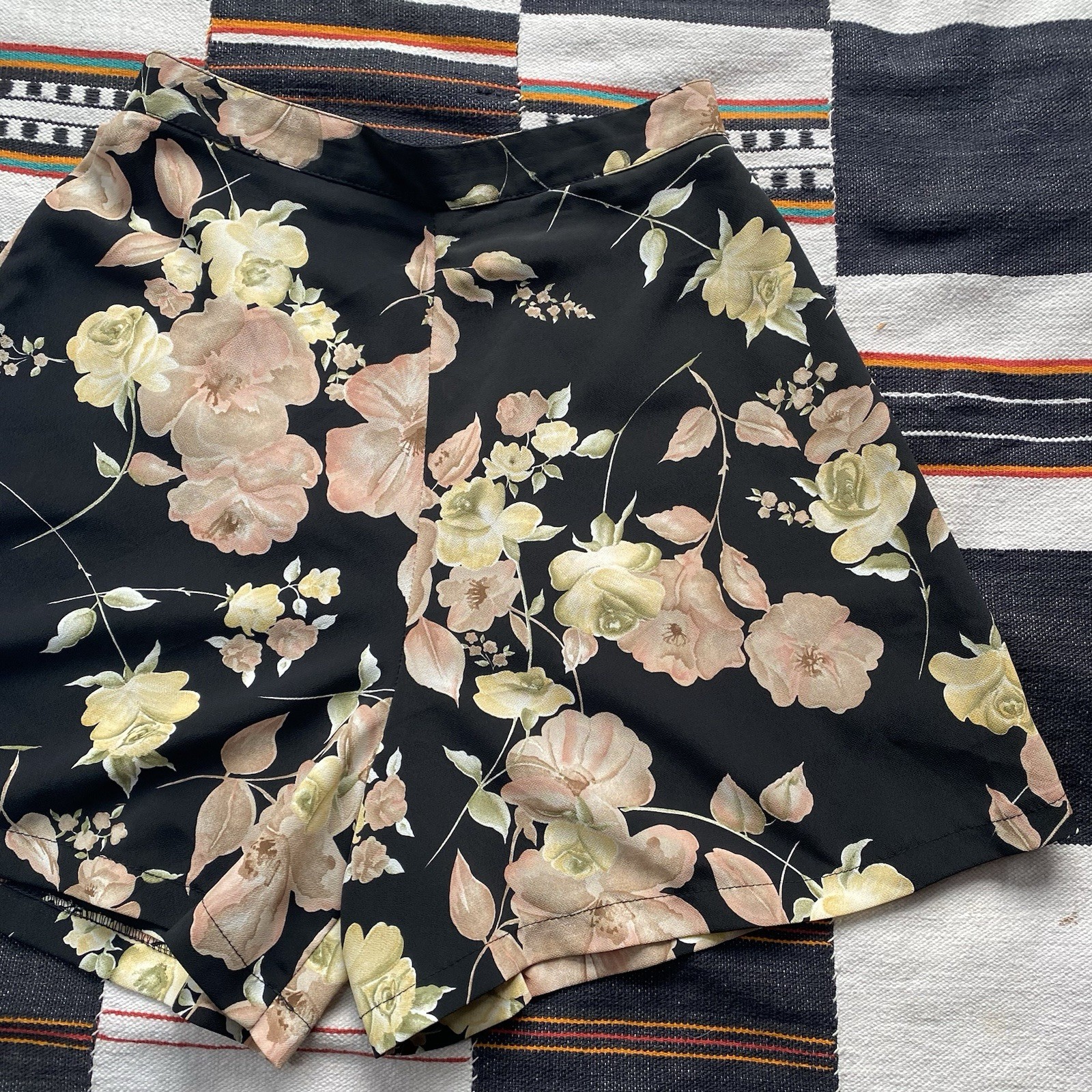 Vintage 90 s Floral High Waisted A Line Shorts. Flared. Back Zipper. Medium. USA