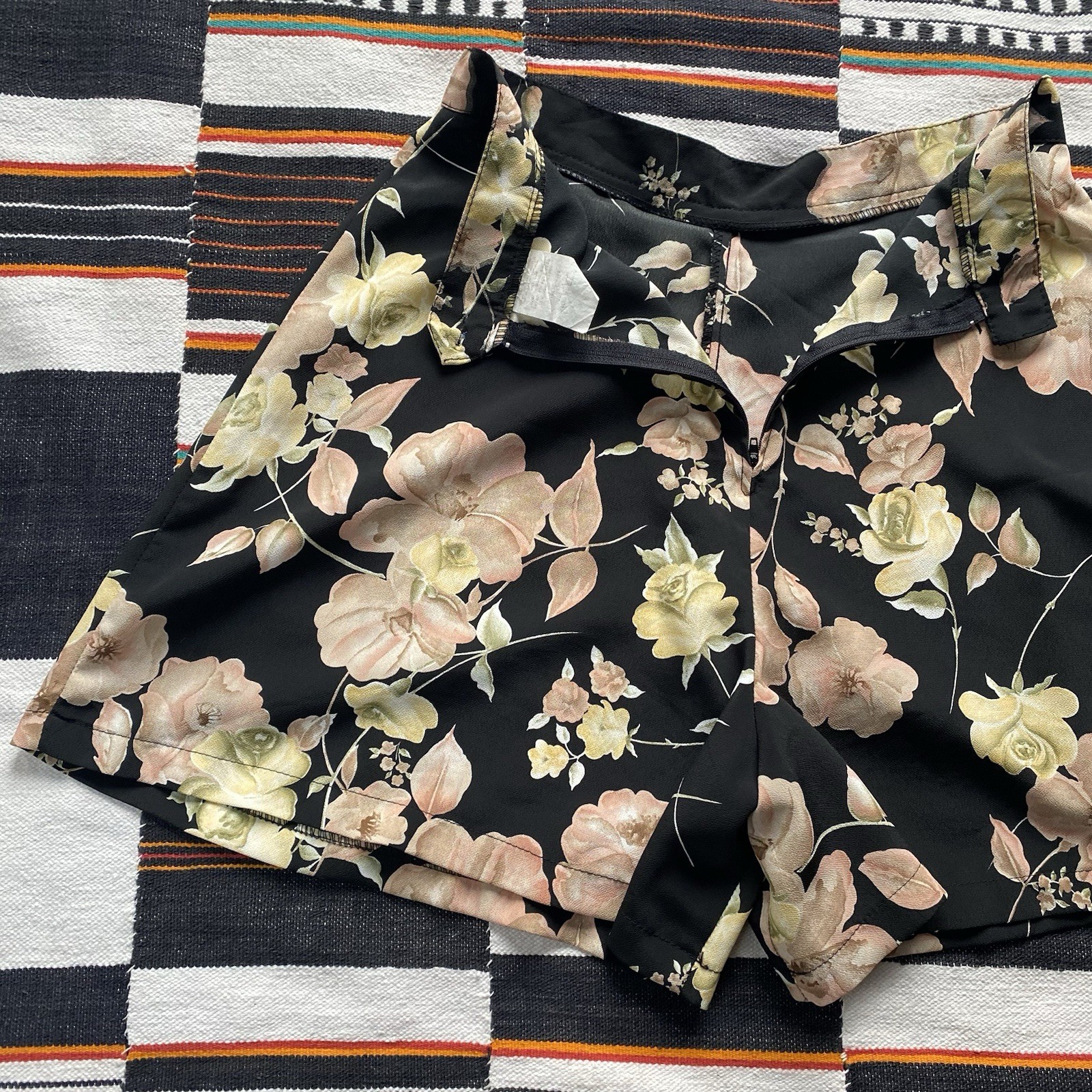 как выглядит Vintage 90 s Floral High Waisted A Line Shorts. Flared. Back Zipper. Medium. USA фото
