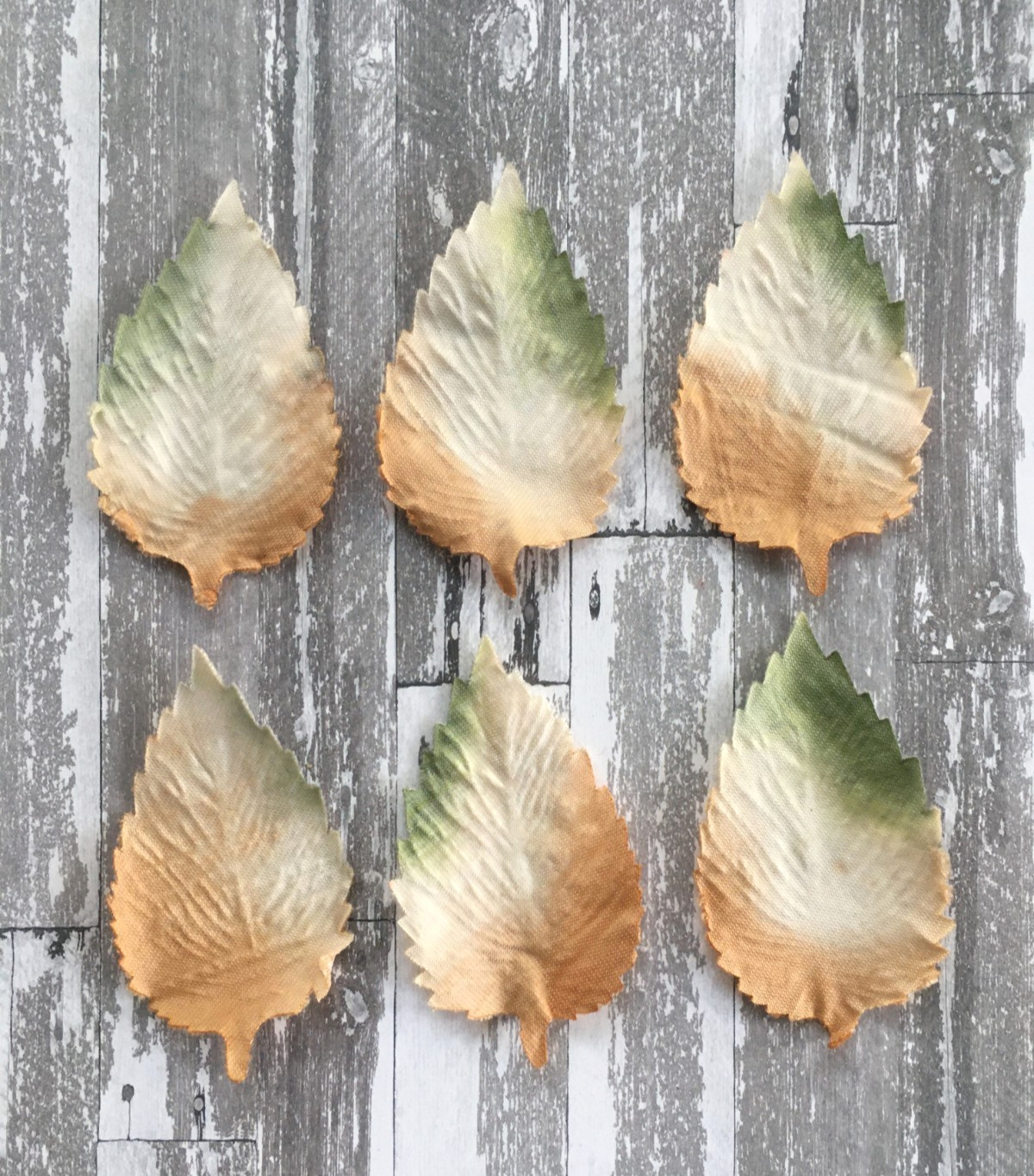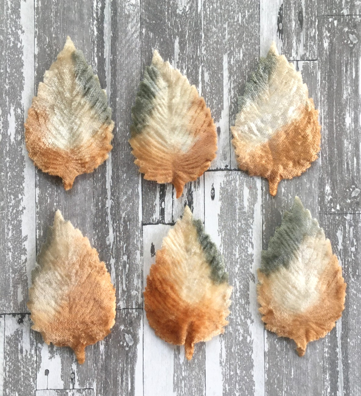 Antique Vintage Millinery Velveteen Leaves Textured Caramel Green Beige - For 6
