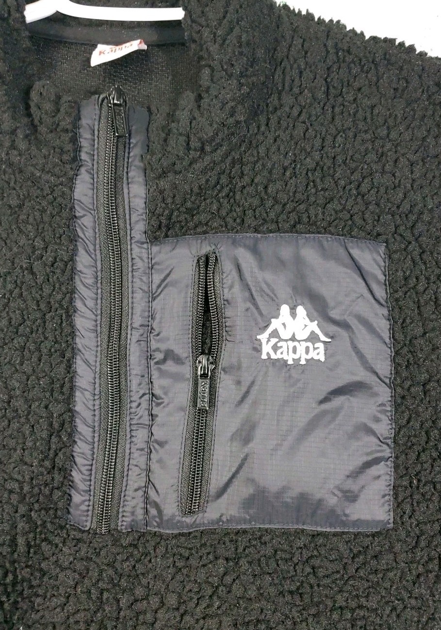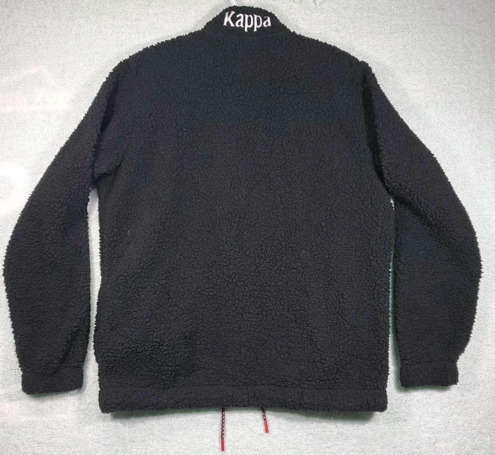 как выглядит VINTAGE Kappa Pullover Men Large Logo Black Fleece Half Zip L Draw String фото
