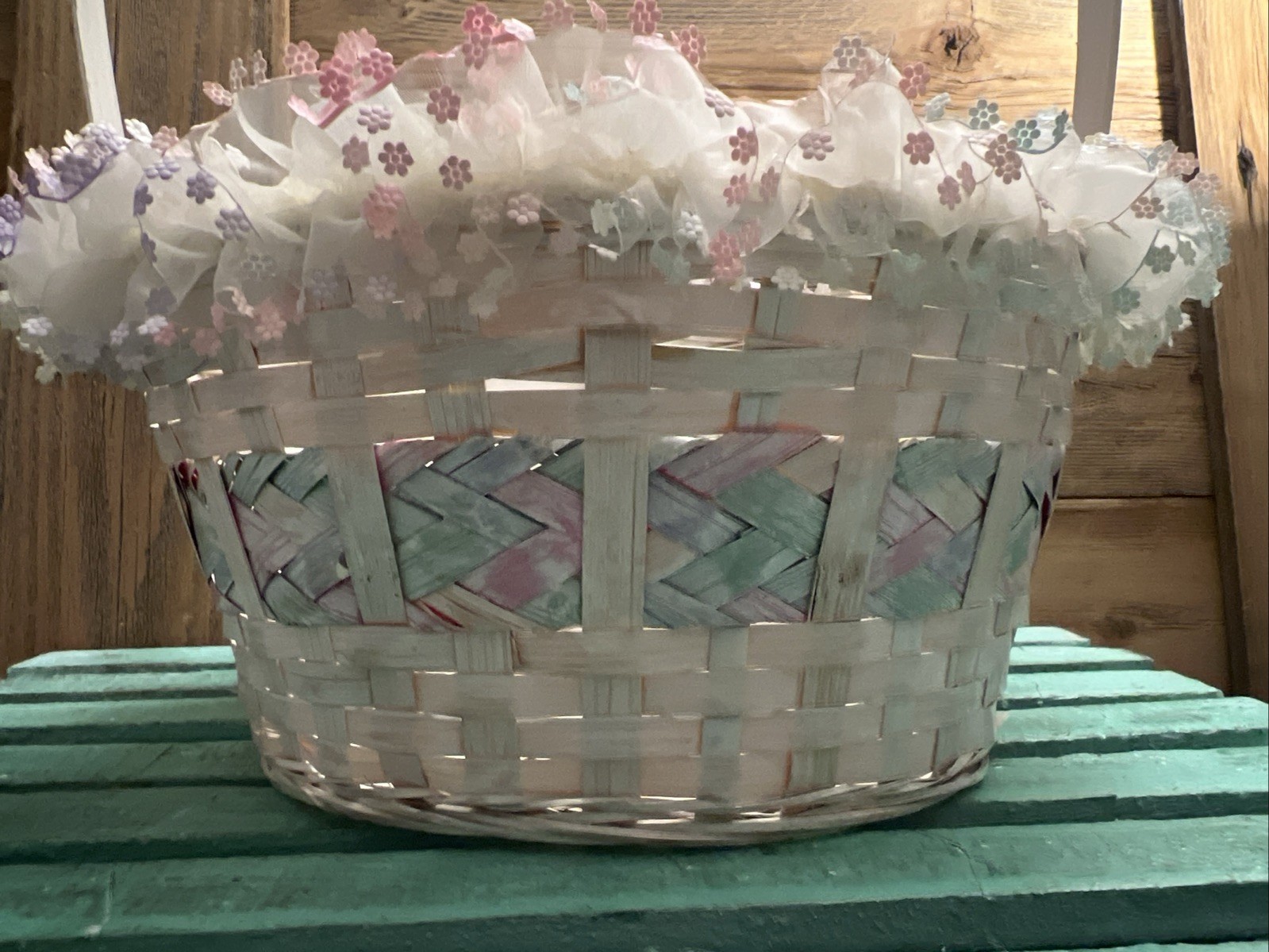 GORGEOUS Large Vintage Woven Pastel Easter Basket/Flower Girl Basket
