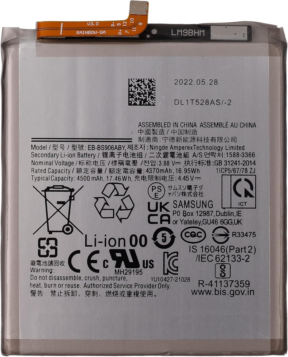 как выглядит New Rechargeable Battery EB BS906ABY Compatible with Samsung Galaxy S22 5G S22 фото