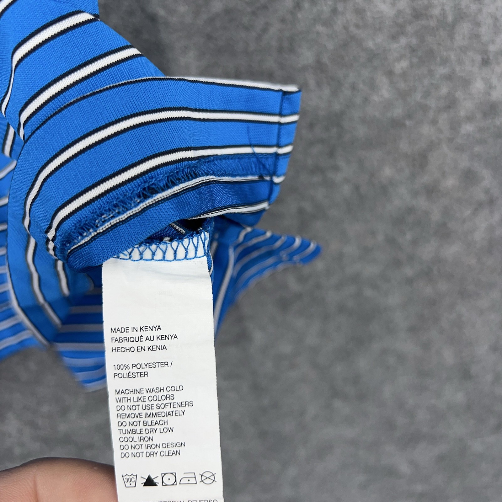 как выглядит IZOD Golf Polo Shirt Mens Large Blue Stripe Polyester Performance Short Sleeve фото