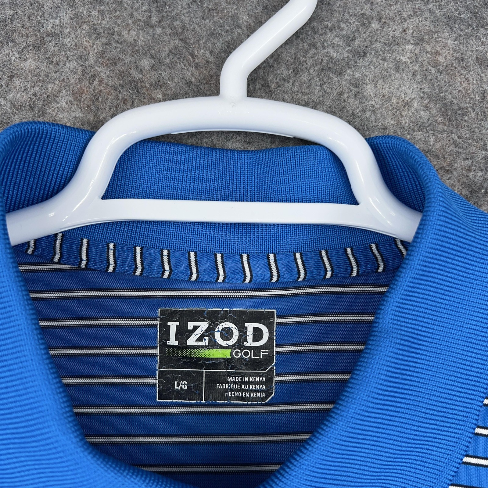 IZOD Golf Polo Shirt Mens Large Blue Stripe Polyester Performance Short Sleeve
