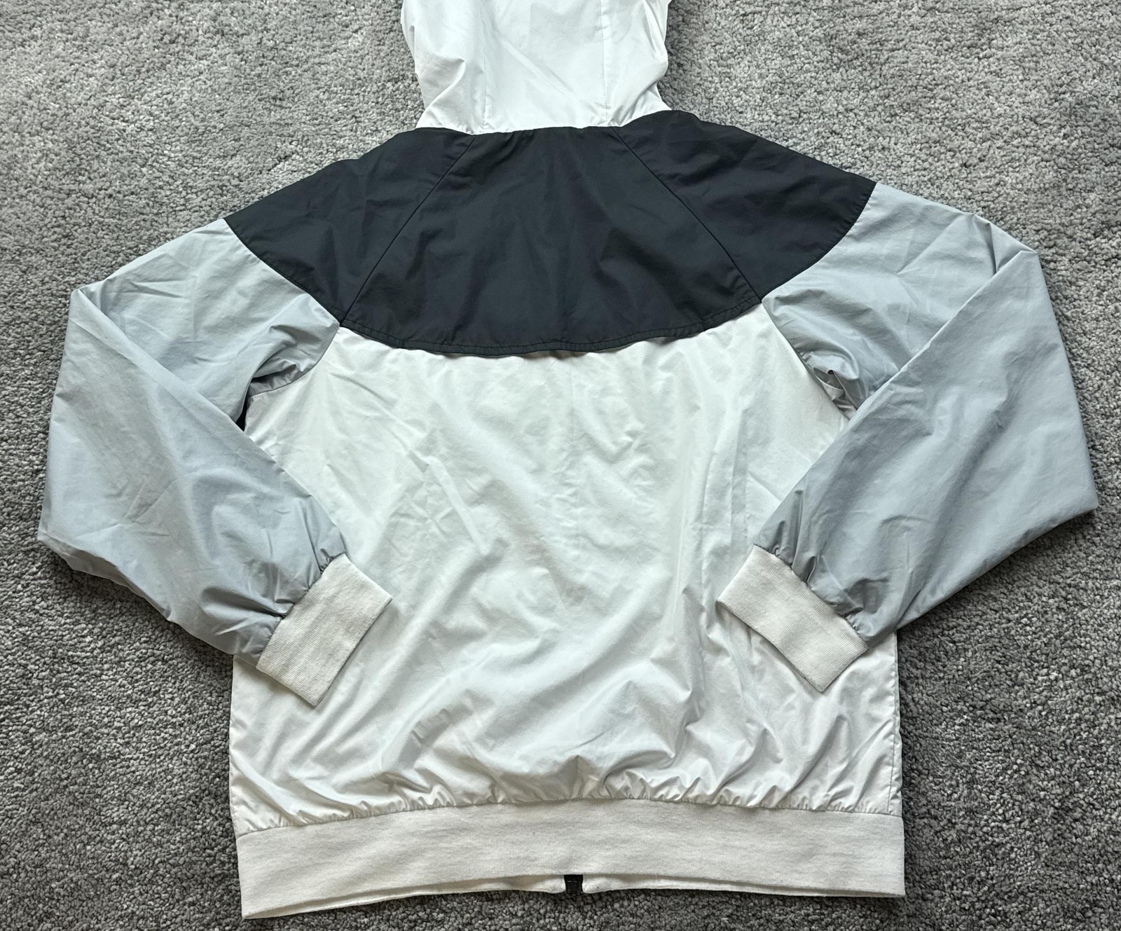 как выглядит Nike Jacket Youth Large White Black Gray Windrunner Hooded Full Zip AQ8316-101 фото